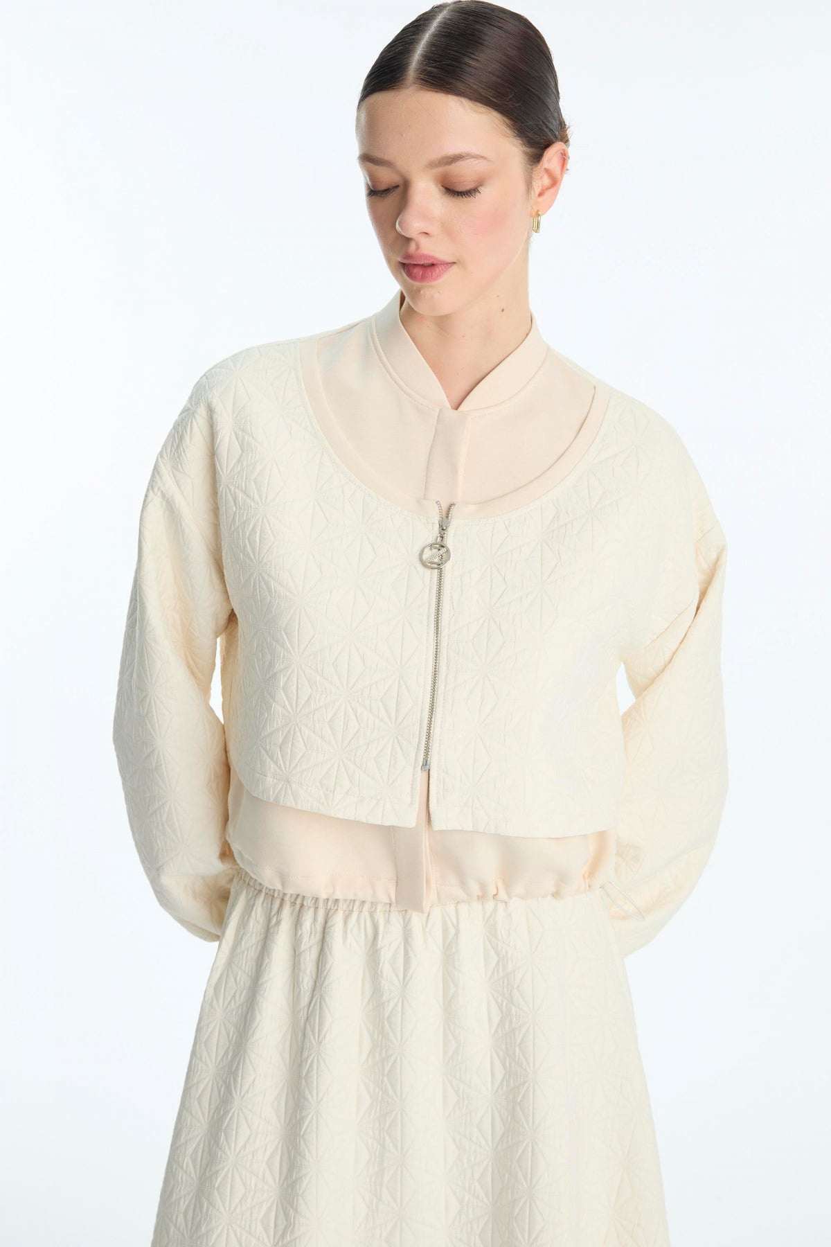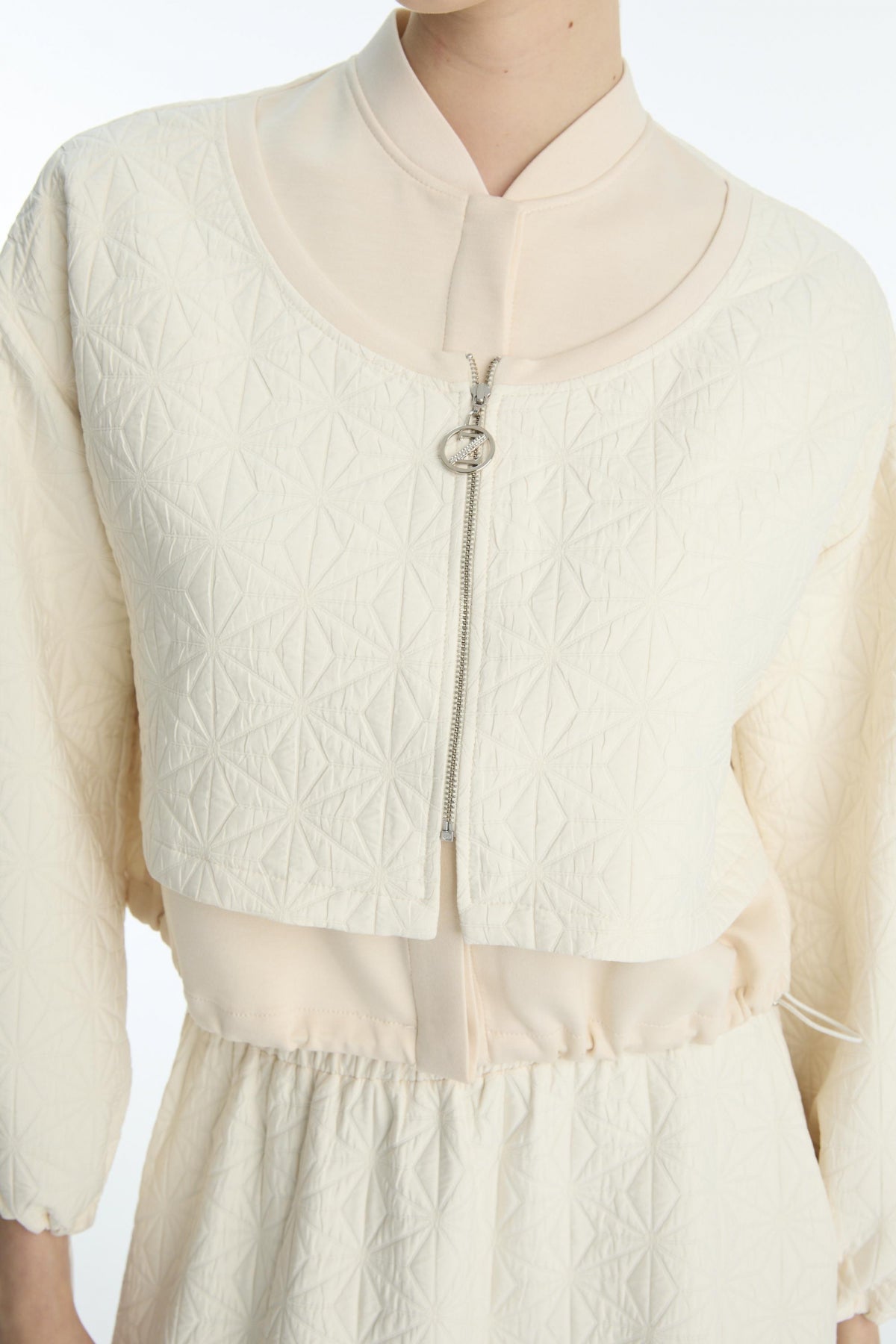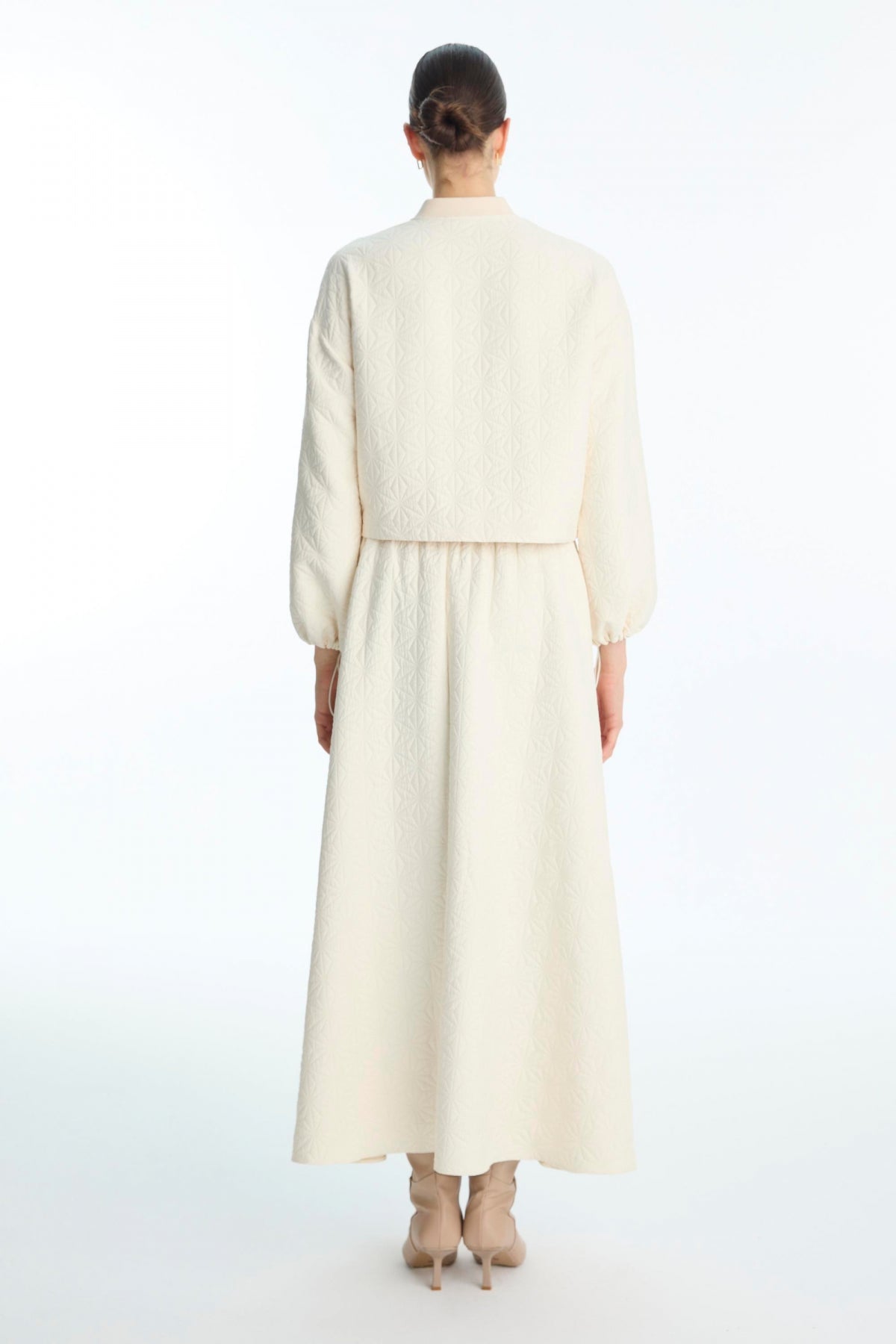 Jakar Desenli Belden Lastikli Ceket Etek Ikili Krem Takım 1688