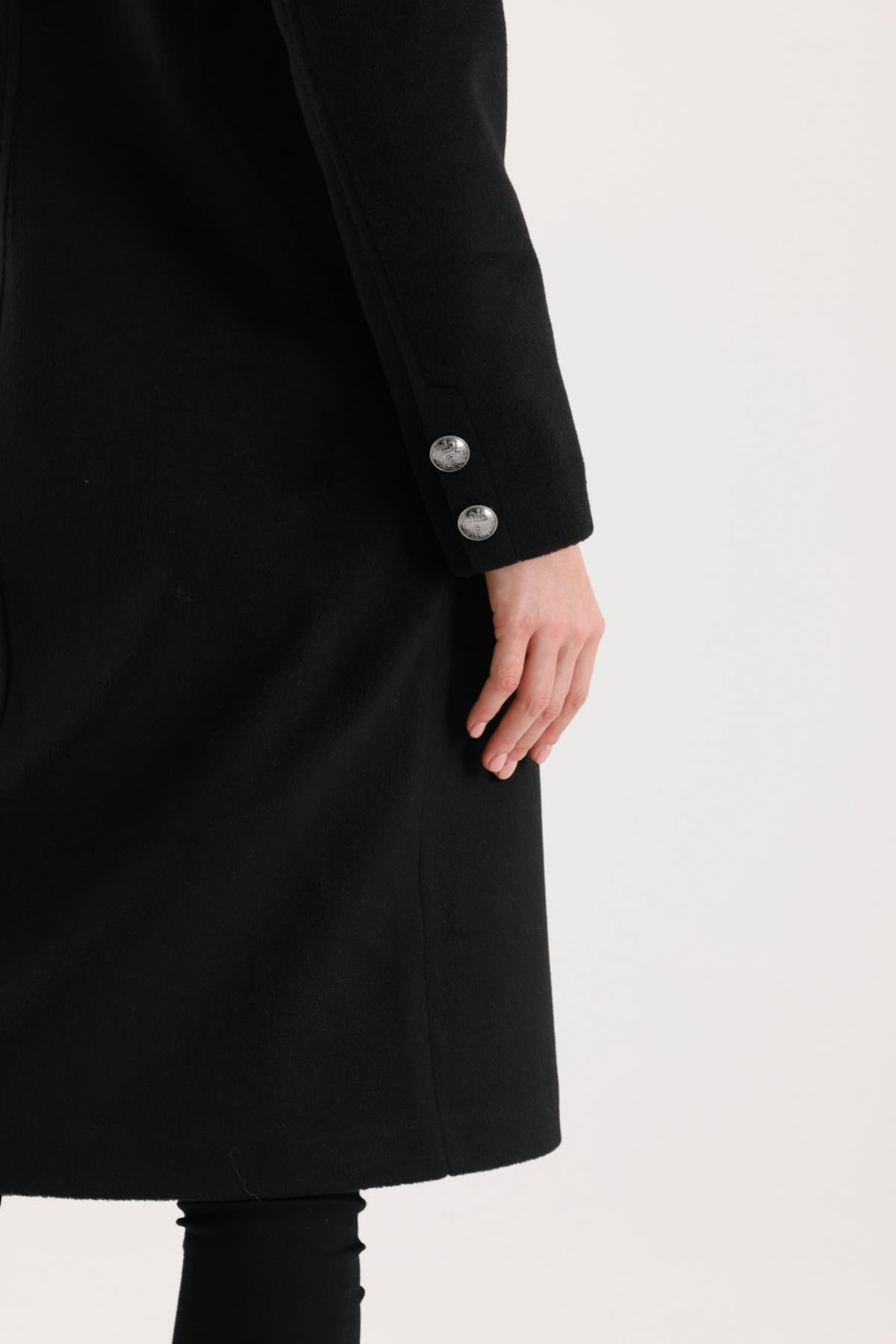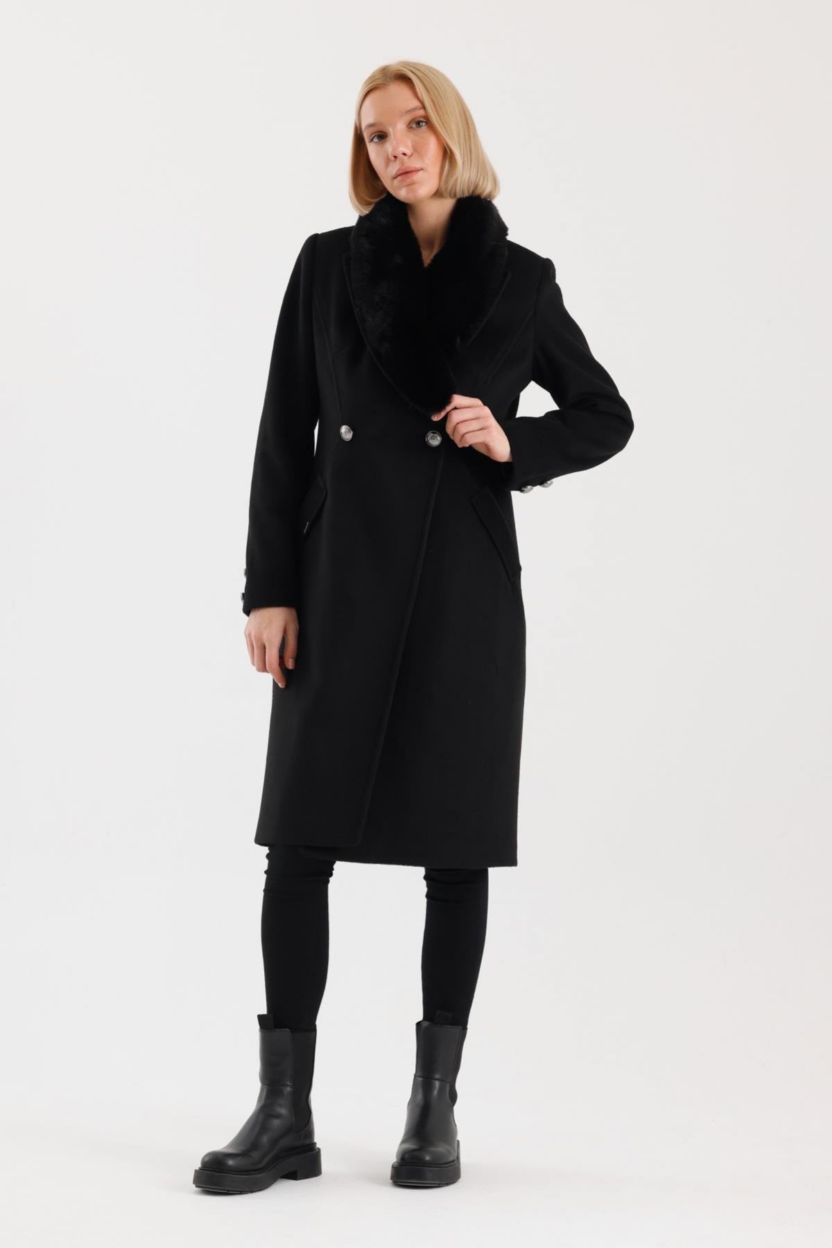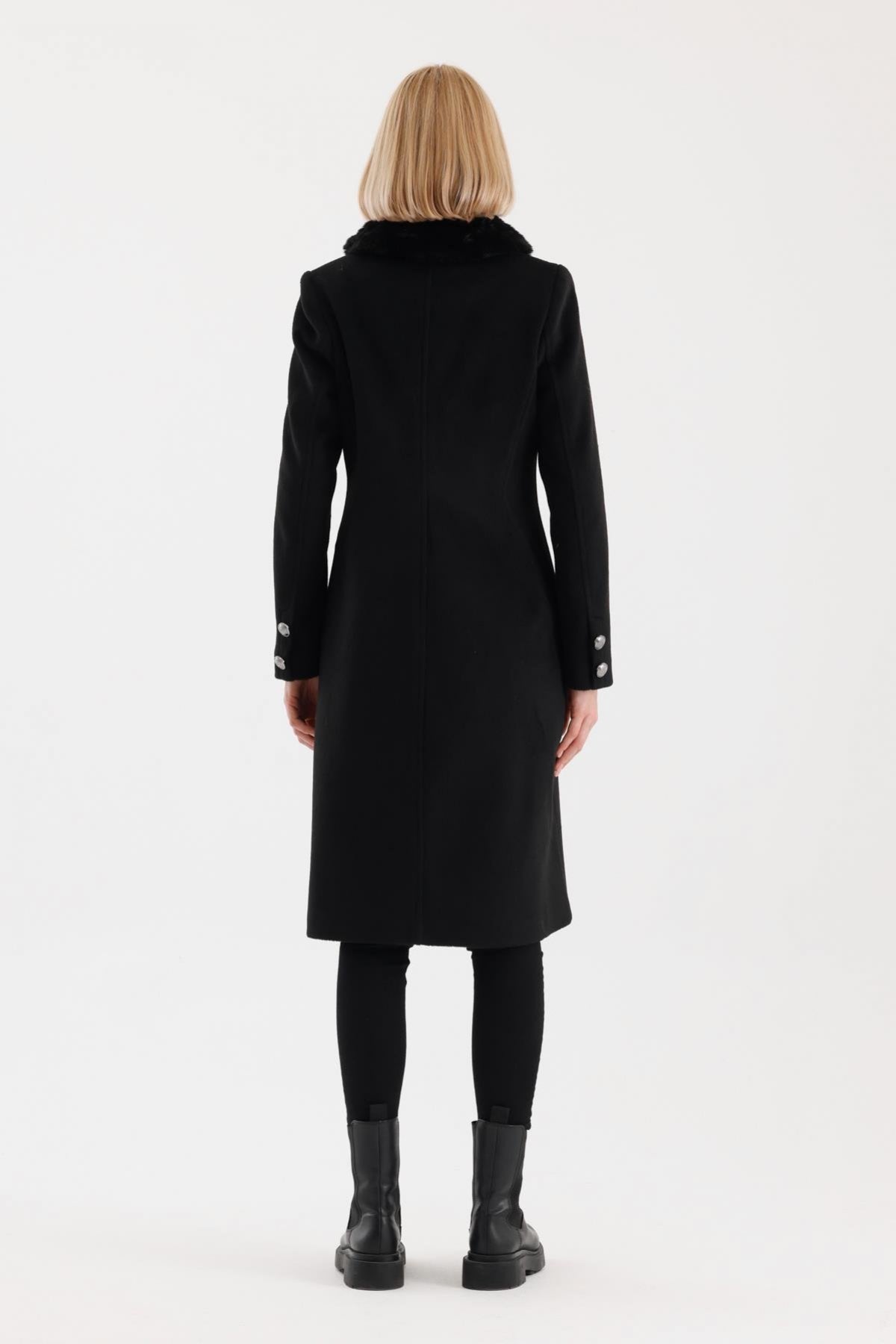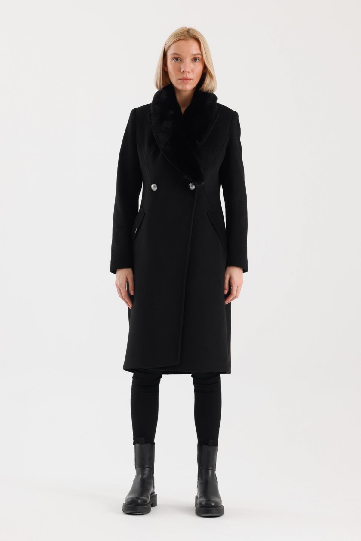 Kürk Yaka Cep Detaylı Kaşe Kaban Siyah Kaban 13092