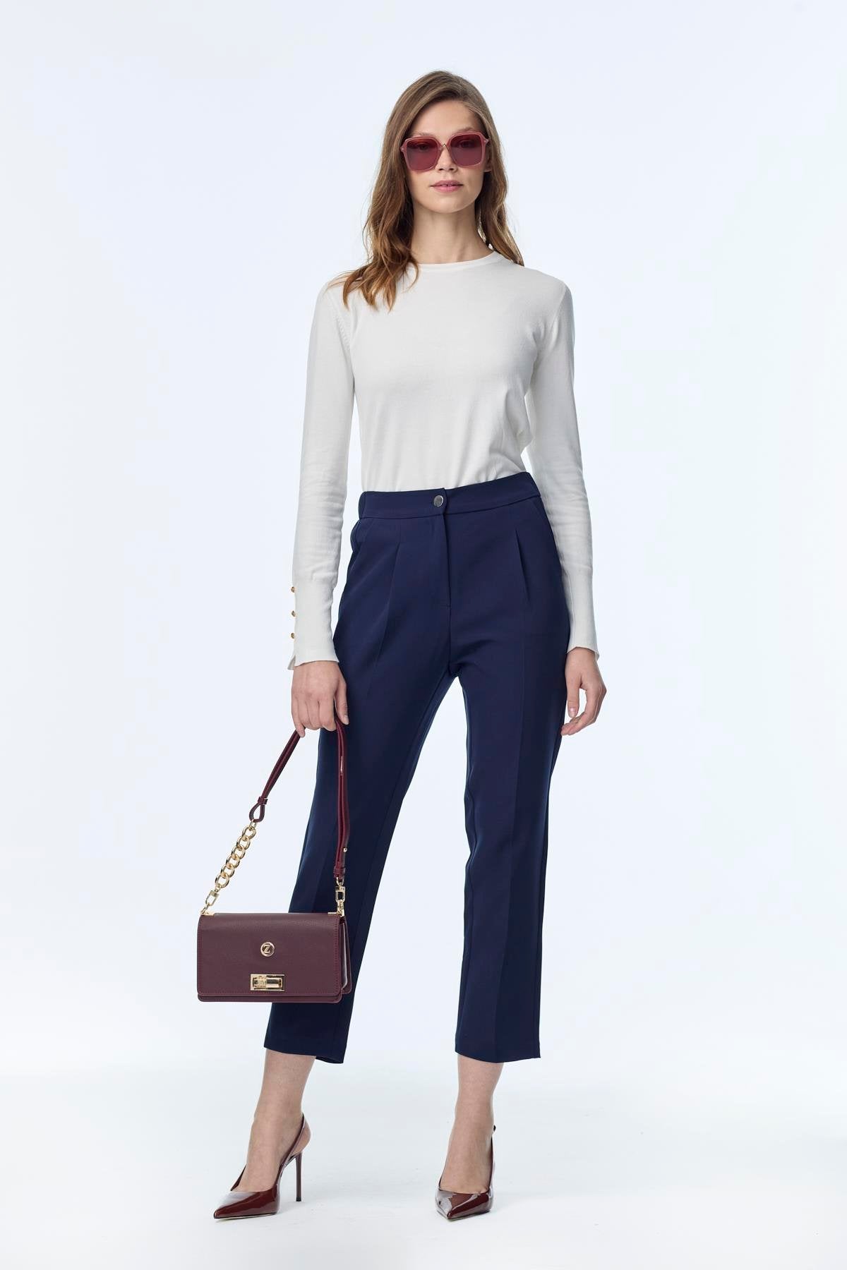 Yüksek Bel Kumaş Lacivert Pantolon 0200