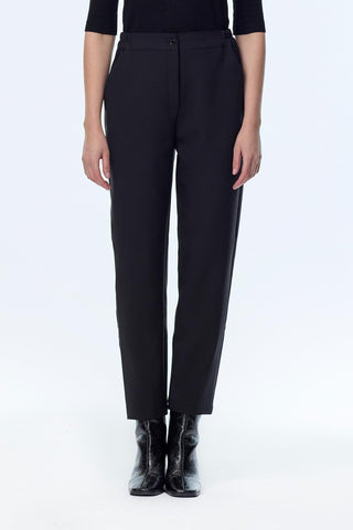Beli Lastikli Düğme Detaylı Cigarette Siyah Pantolon 0251
