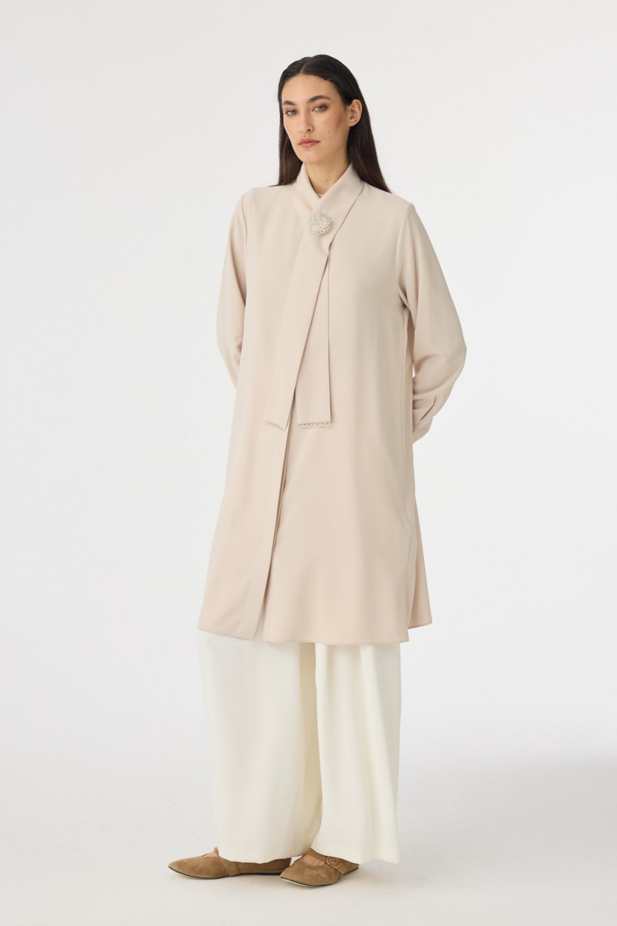 T-1672 SHON TUNİK 44-50 Bej Tunik 1672