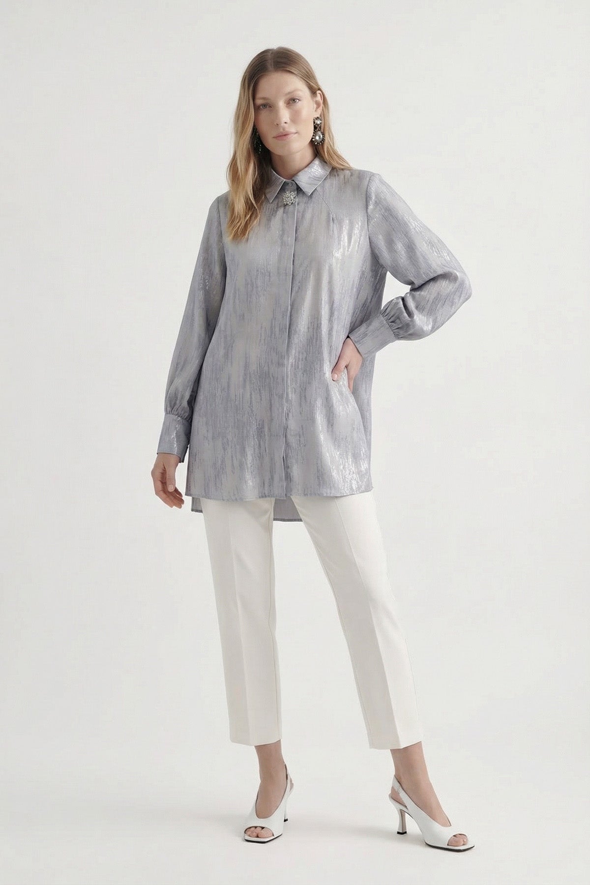 B-0095 MAREEN BLUZ 42-48 Gri/mavi Bluz 0095