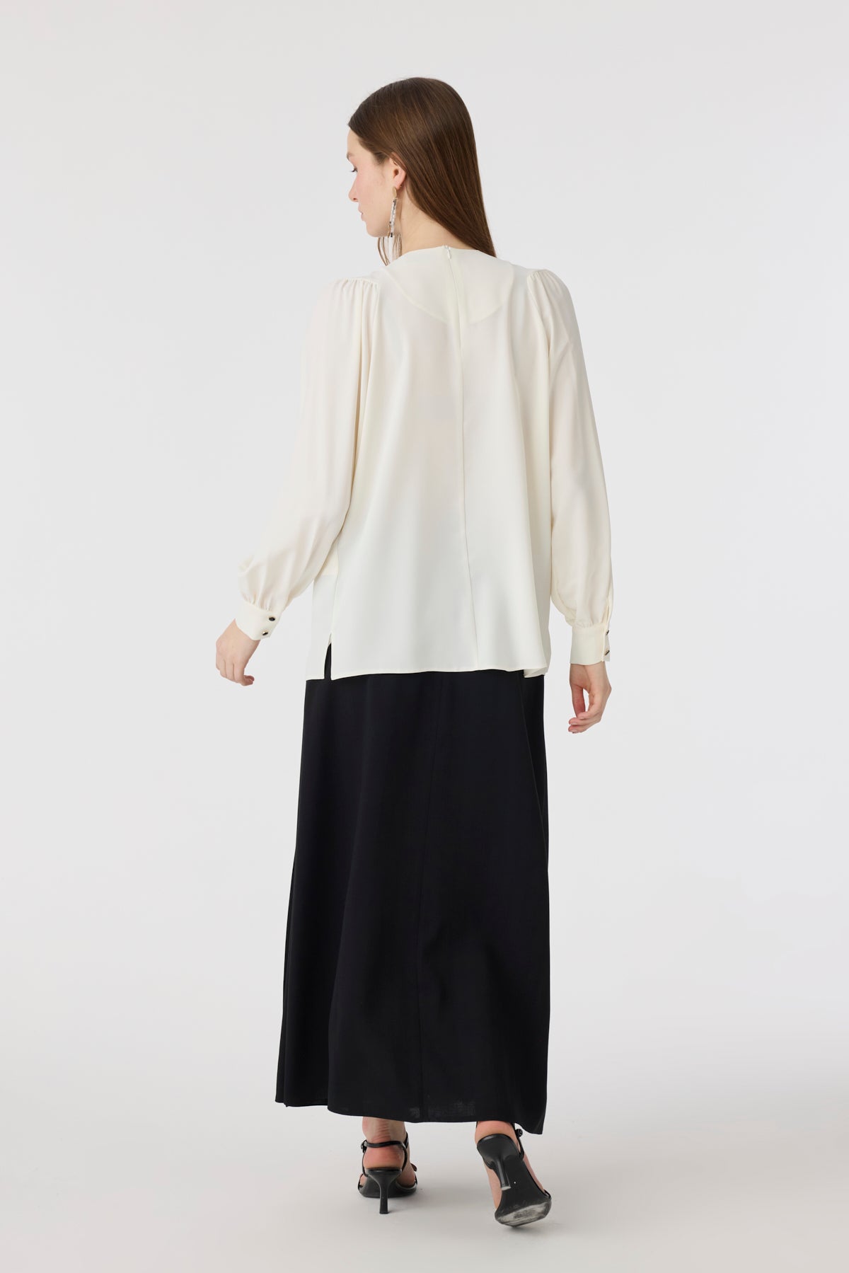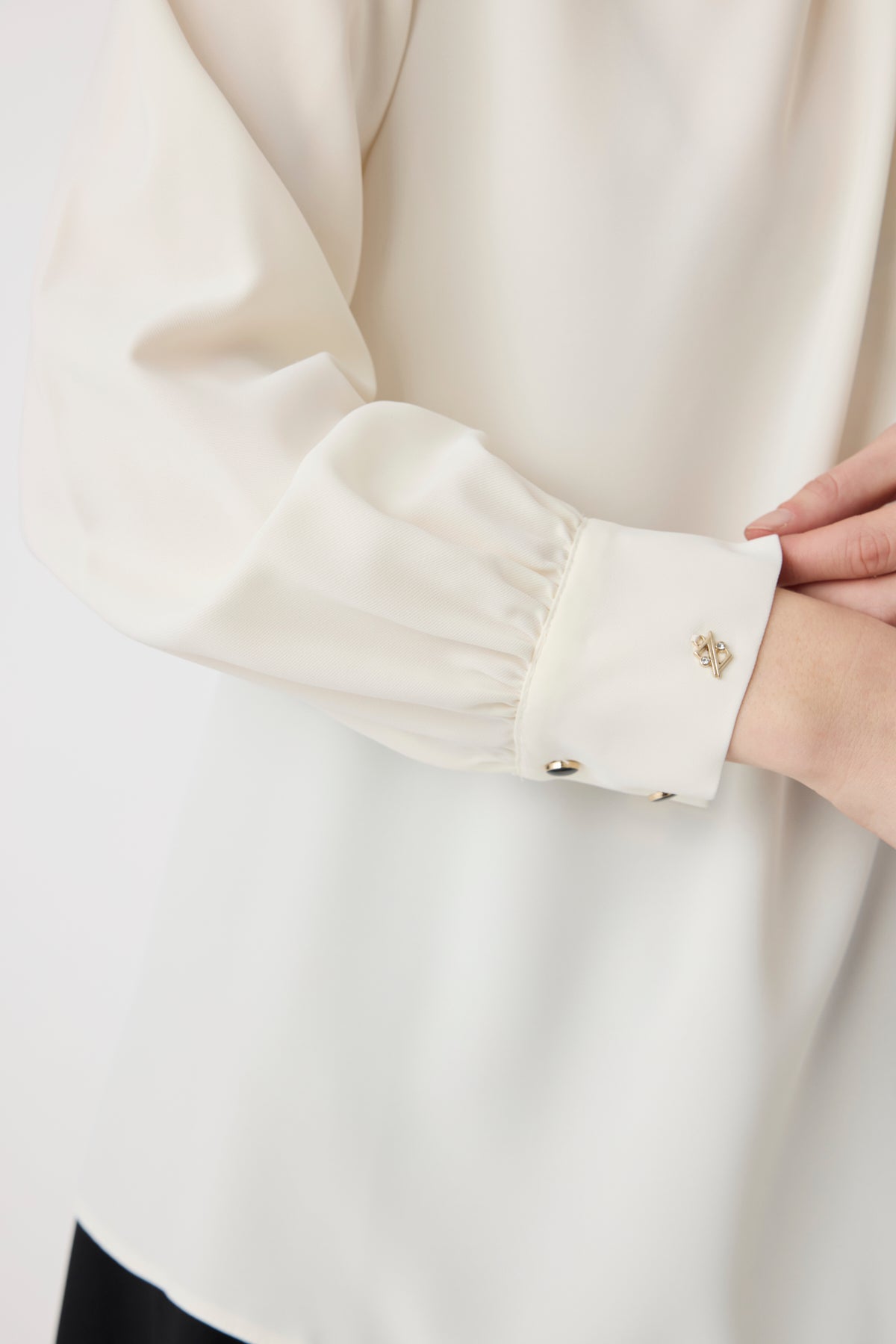 Puantiye Fularlı Pilise Detaylı Ekru Bluz 0142