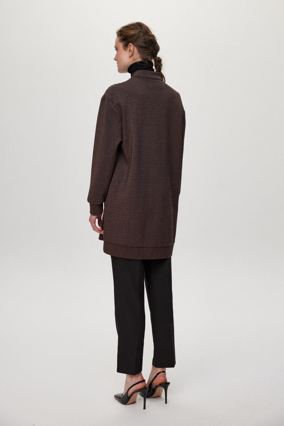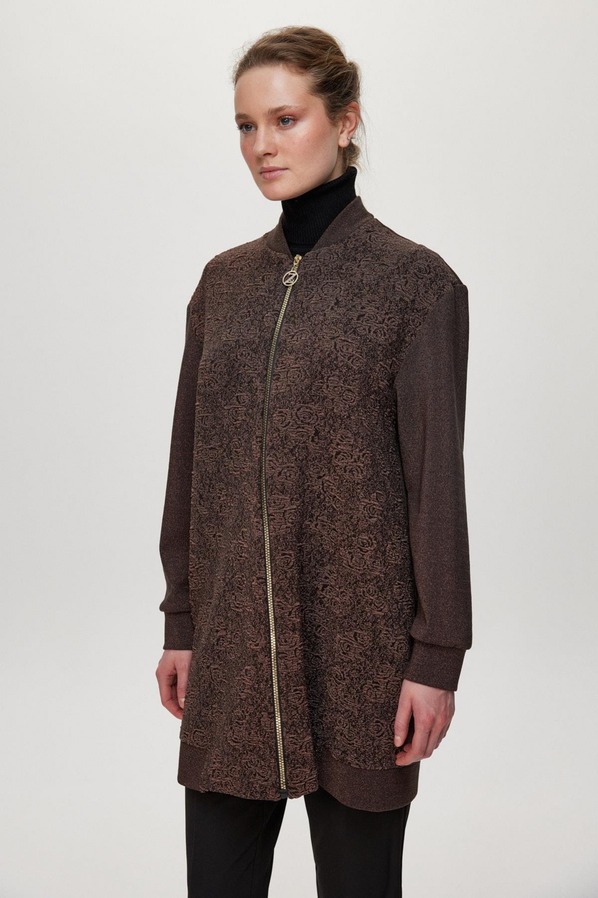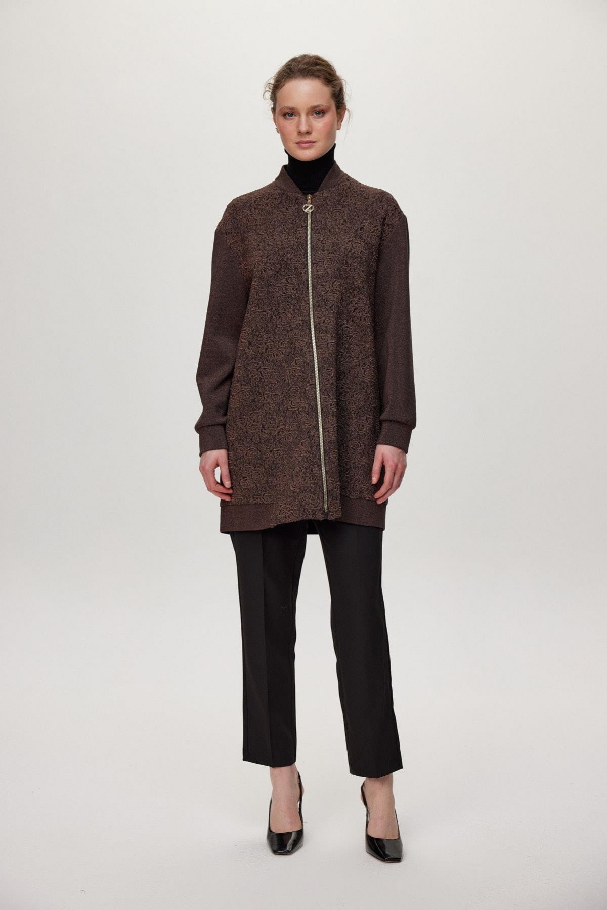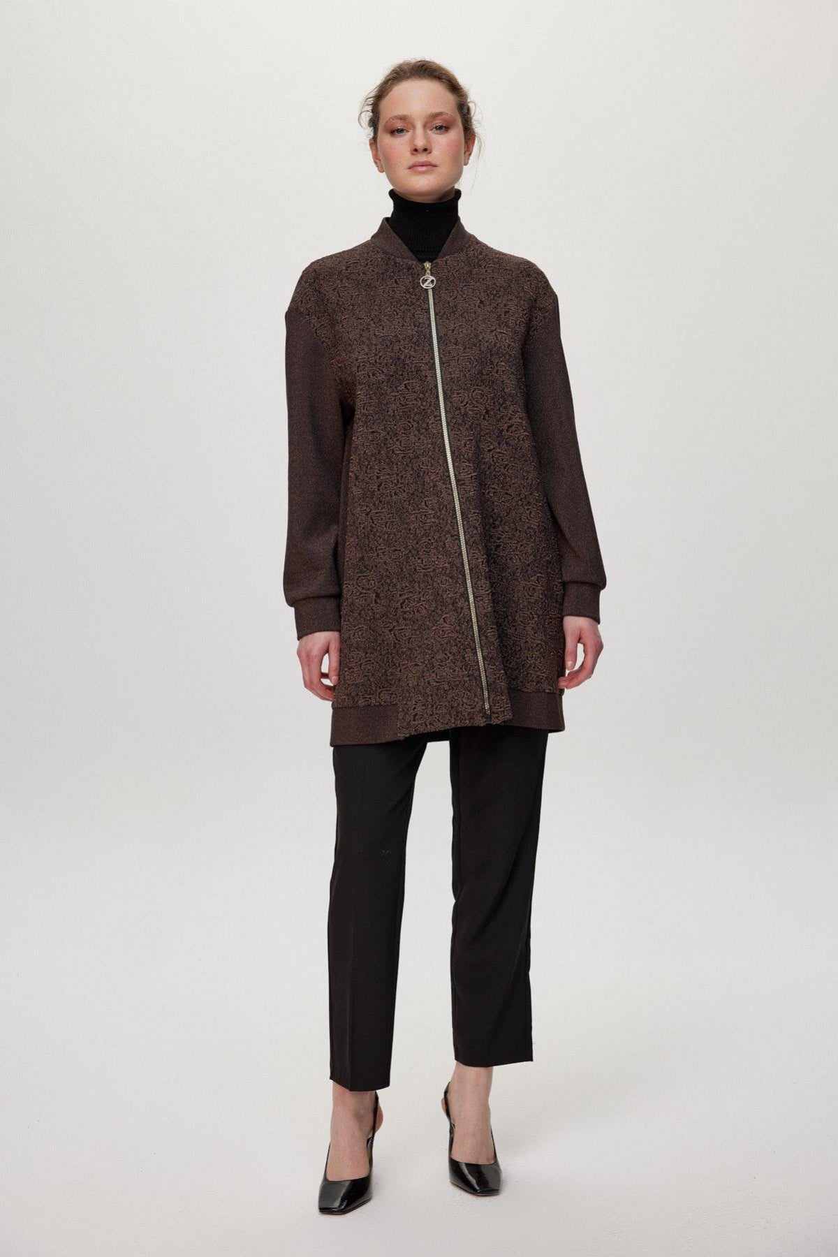 Dokulu Fermuar Detaylı Kahve Ceket 0164