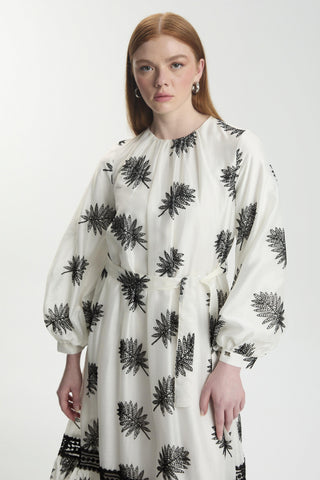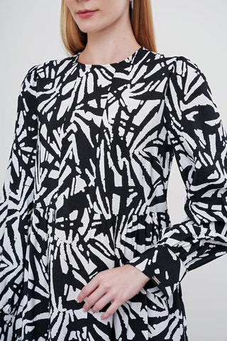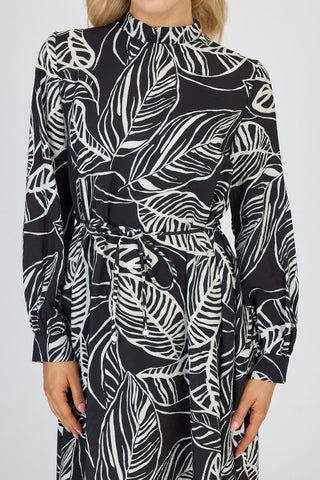 Hakim Yaka Yaprak Desenli Siyah Elbise 0482