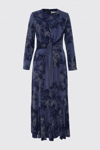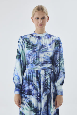 Desenli Uzun Mavi Elbise 0455