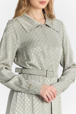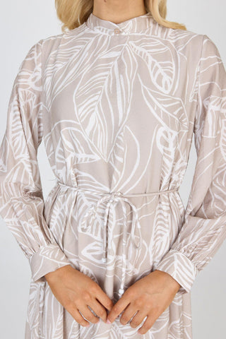 Hakim Yaka Yaprak Desenli Gri Elbise 0482