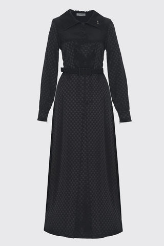 Desenli Uzun Siyah Elbise 0413