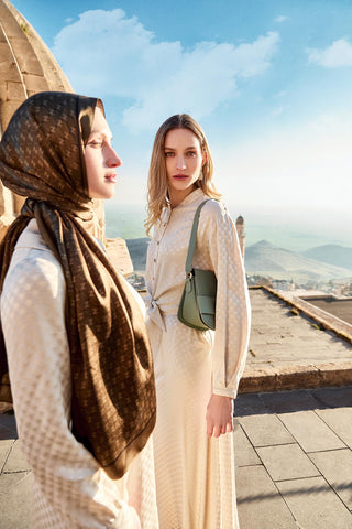Halka Motifli Kuşaklı Ekru Elbise 0495