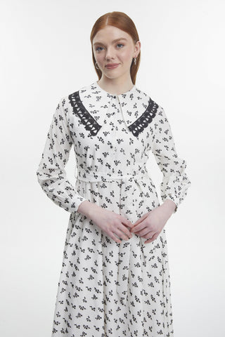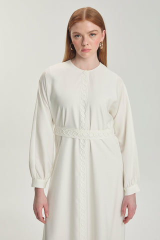 Bebe Yaka Dantel Işlemeli Kuşaklı Ekru Elbise 0500