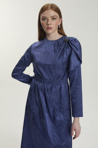 Yaka Detaylı Ipek Cupra Mavi Elbise 0444