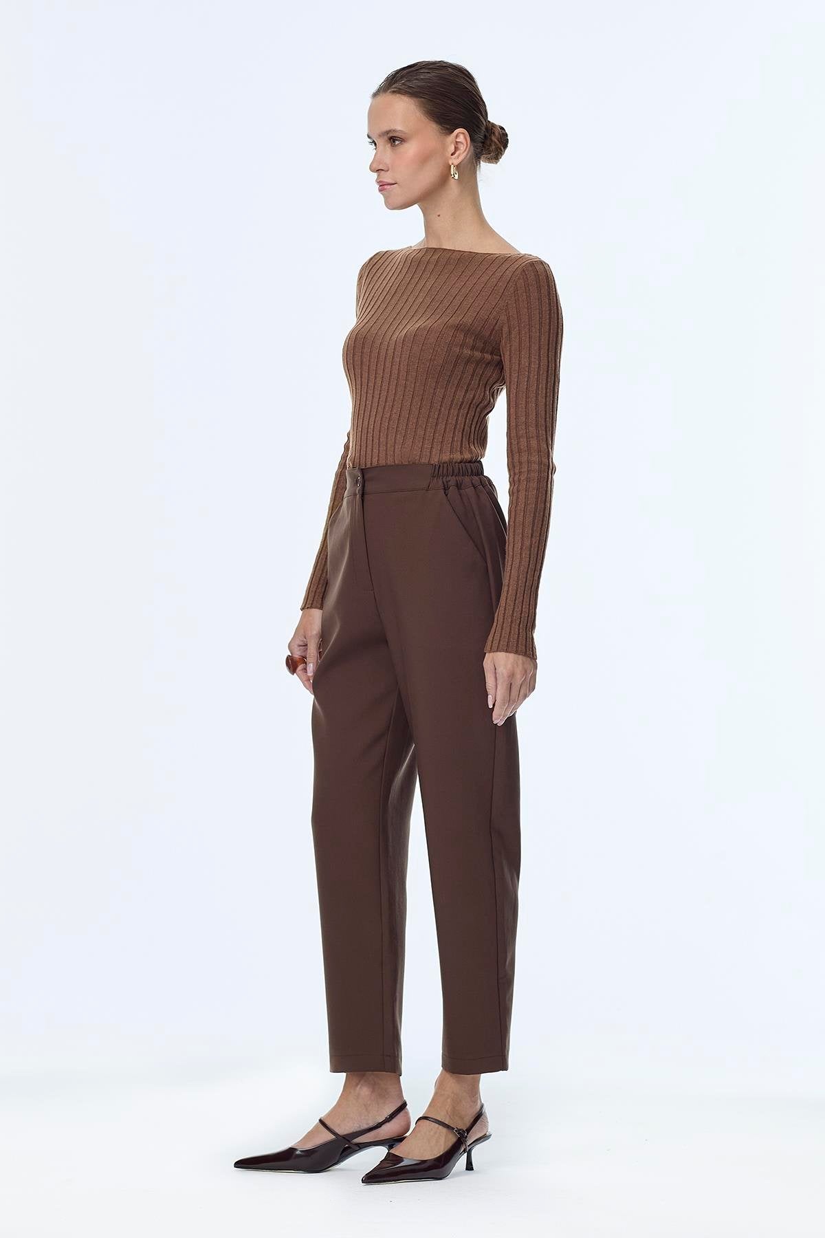 Beli Lastikli Kahve Pantolon 0259