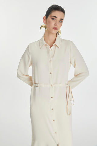Gömlek Yaka Düğmeli Sırt Detaylı Giy Çık Ekru Zühre 0273