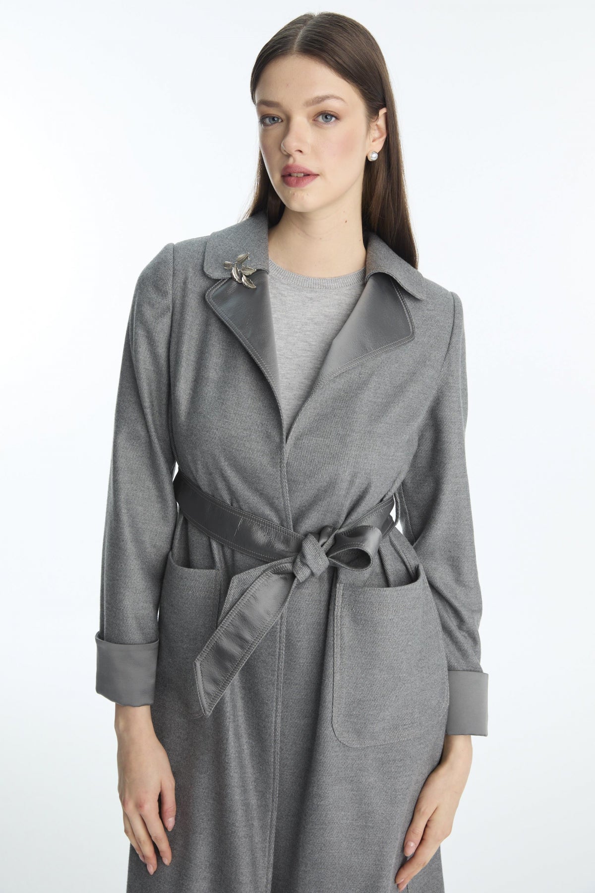 Aksesuar Detaylı Kuşaklı Giy Çık Gri Giy Çık 0030