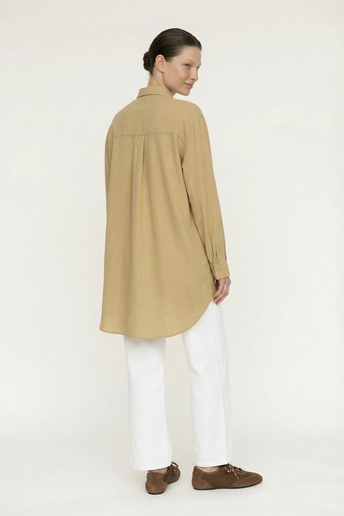 Düğmeli Cep Detaylı Rahat Hardal Gömlek 0130