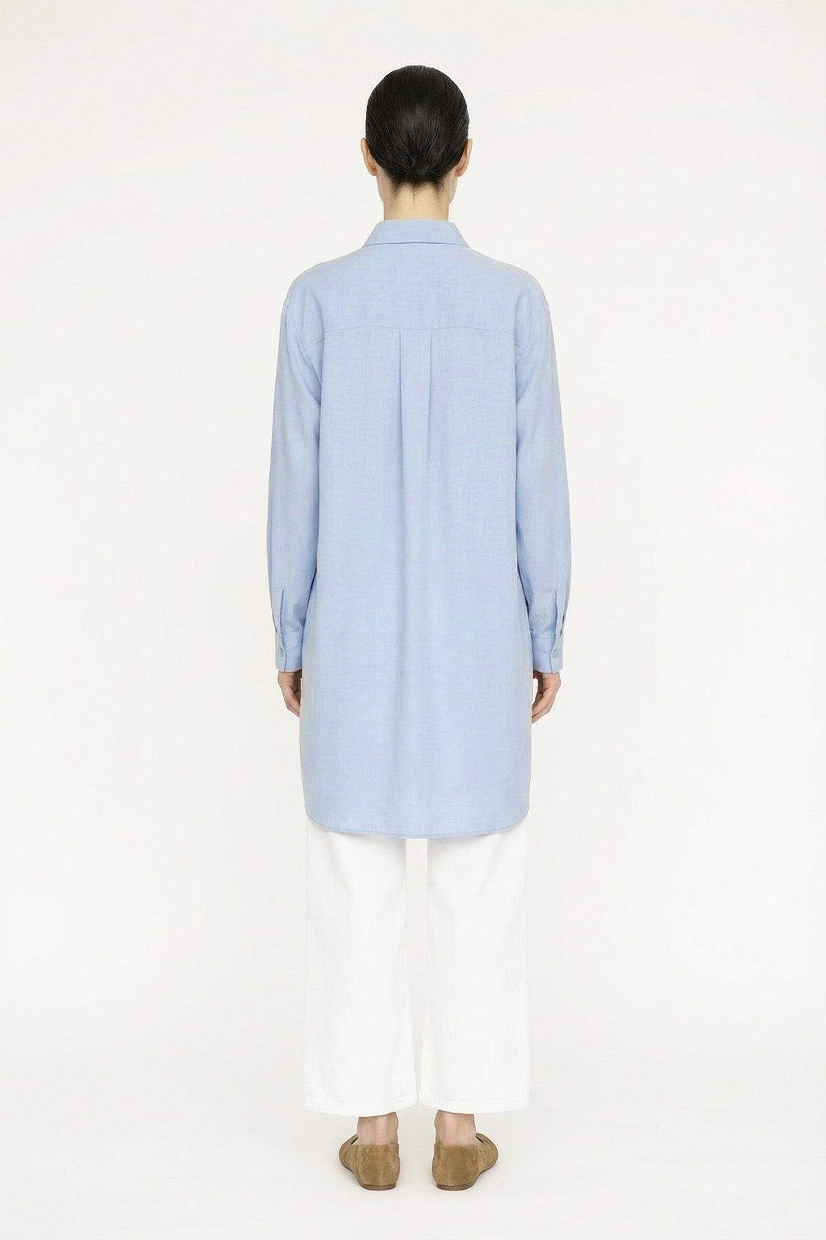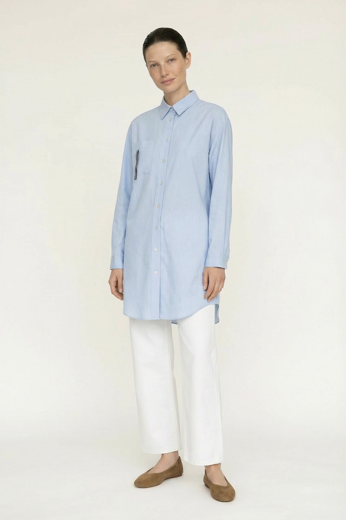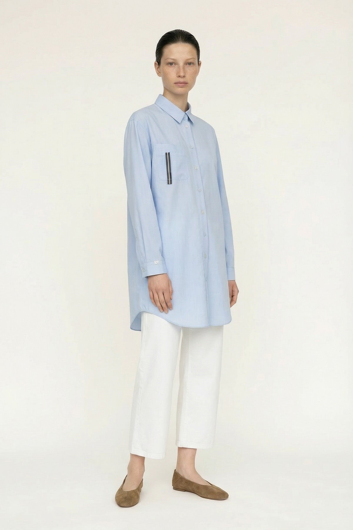 Düğmeli Cep Detaylı Rahat Mavi Gömlek 0130