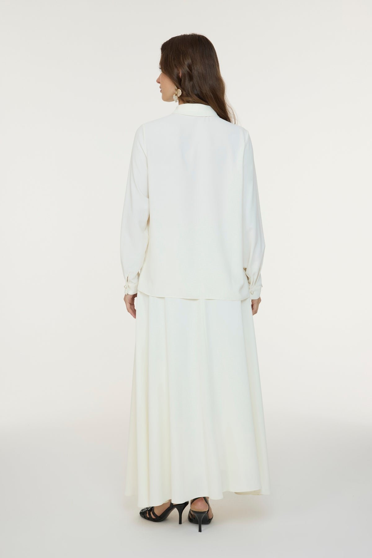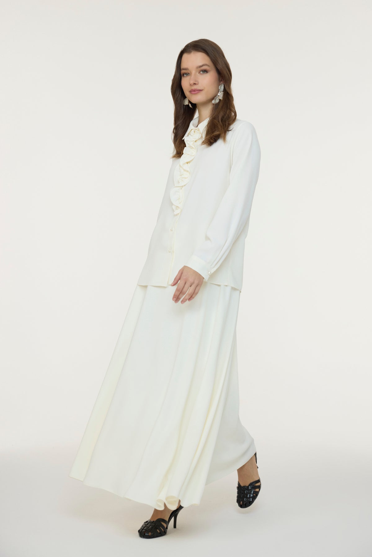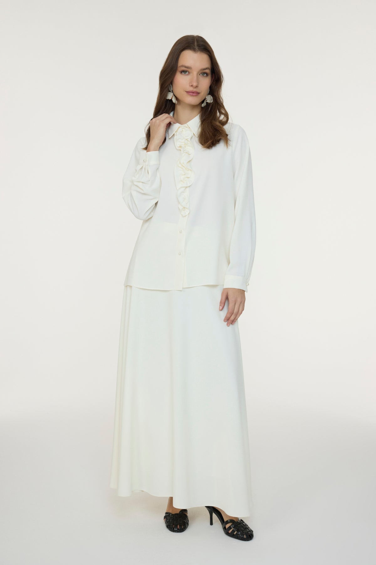 Fırfırlı Çiçek Detaylı Zarif Ekru Gömlek 0139