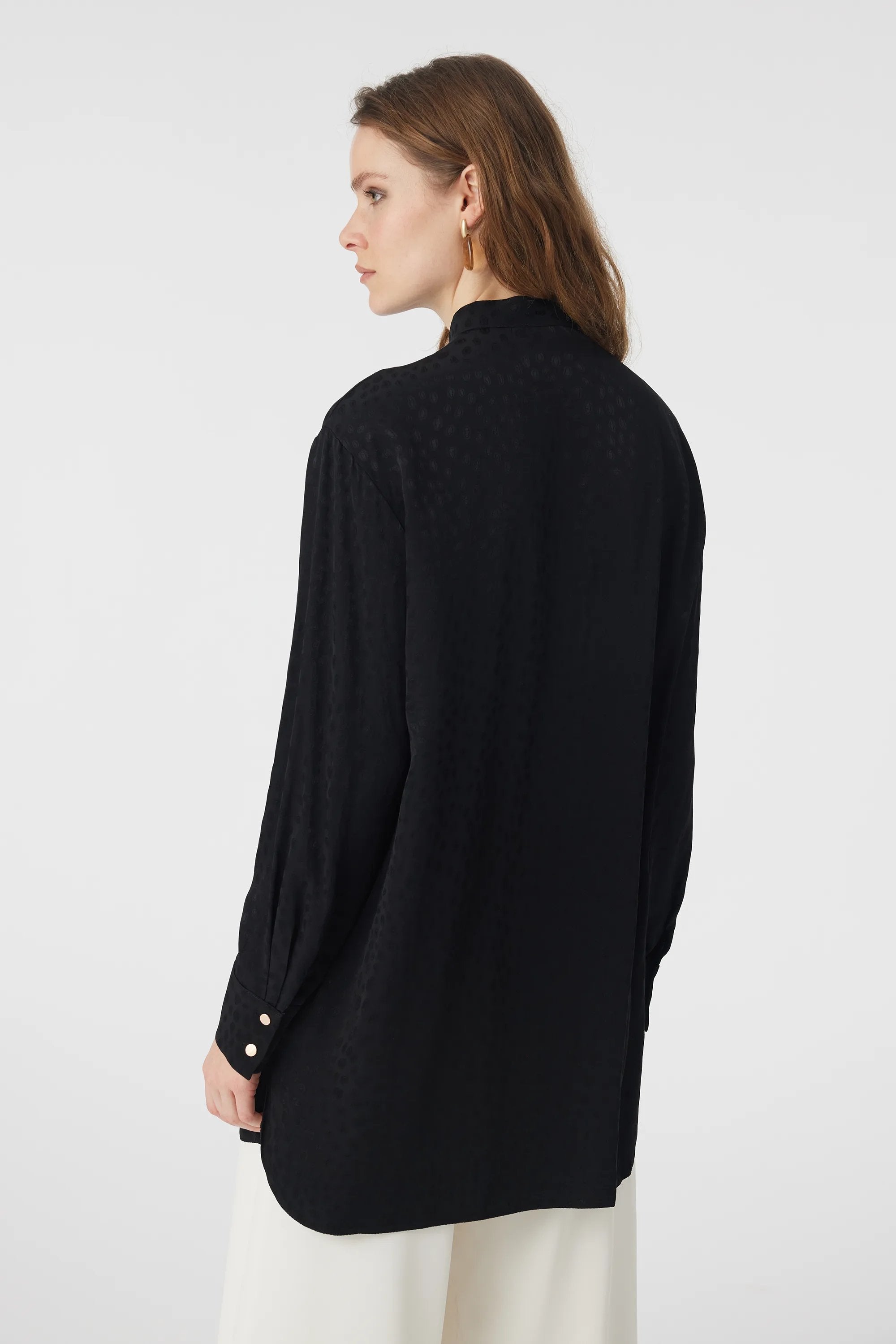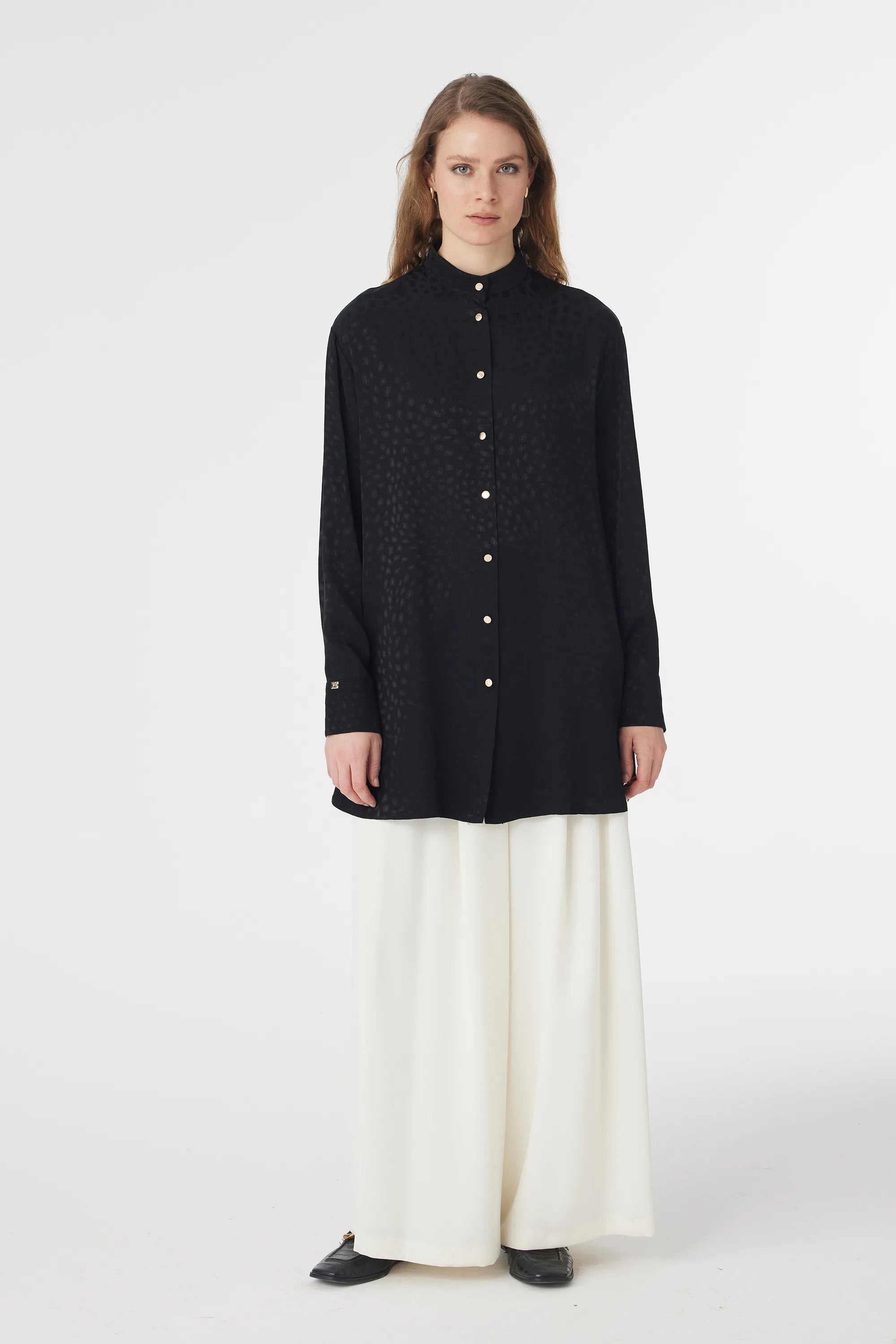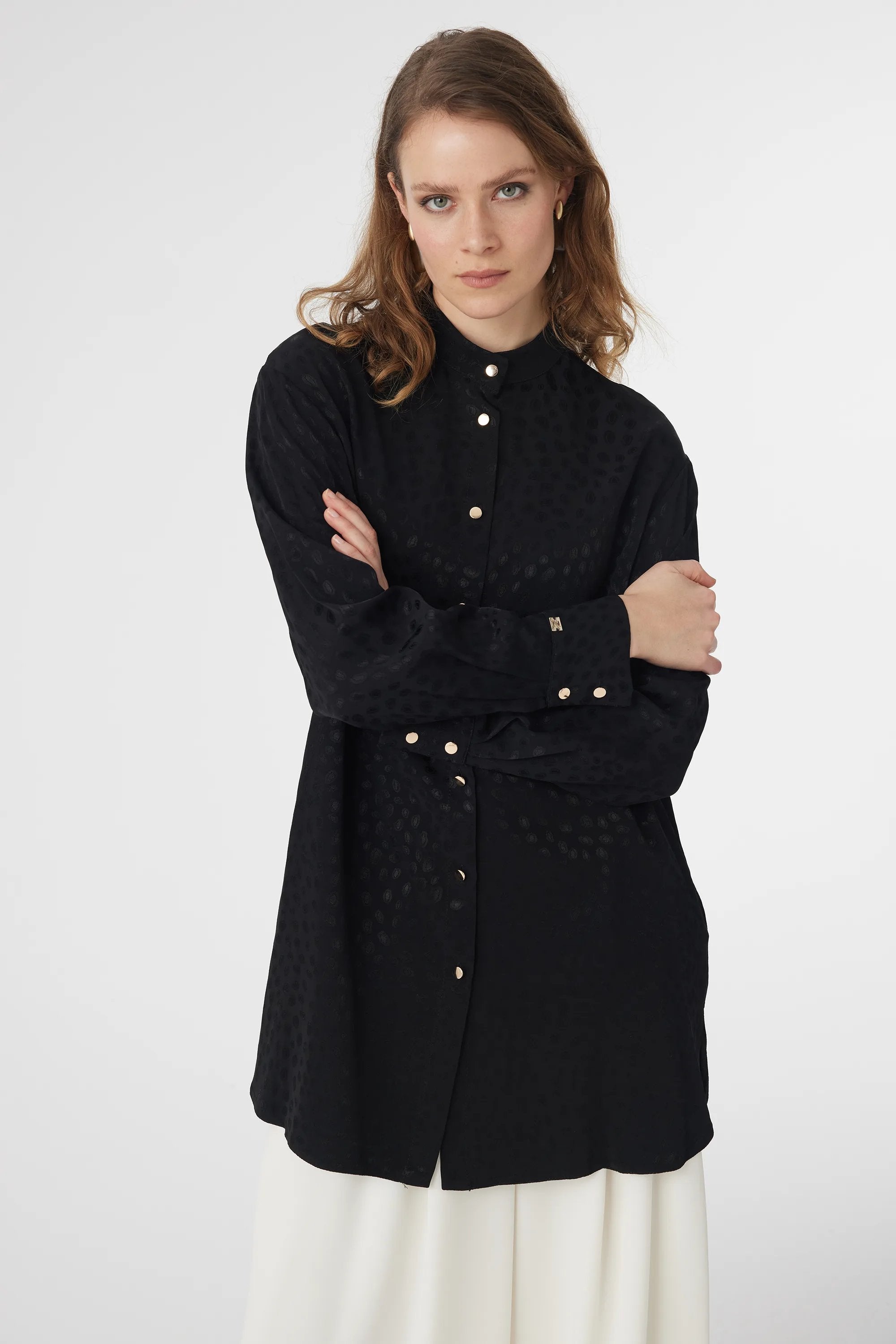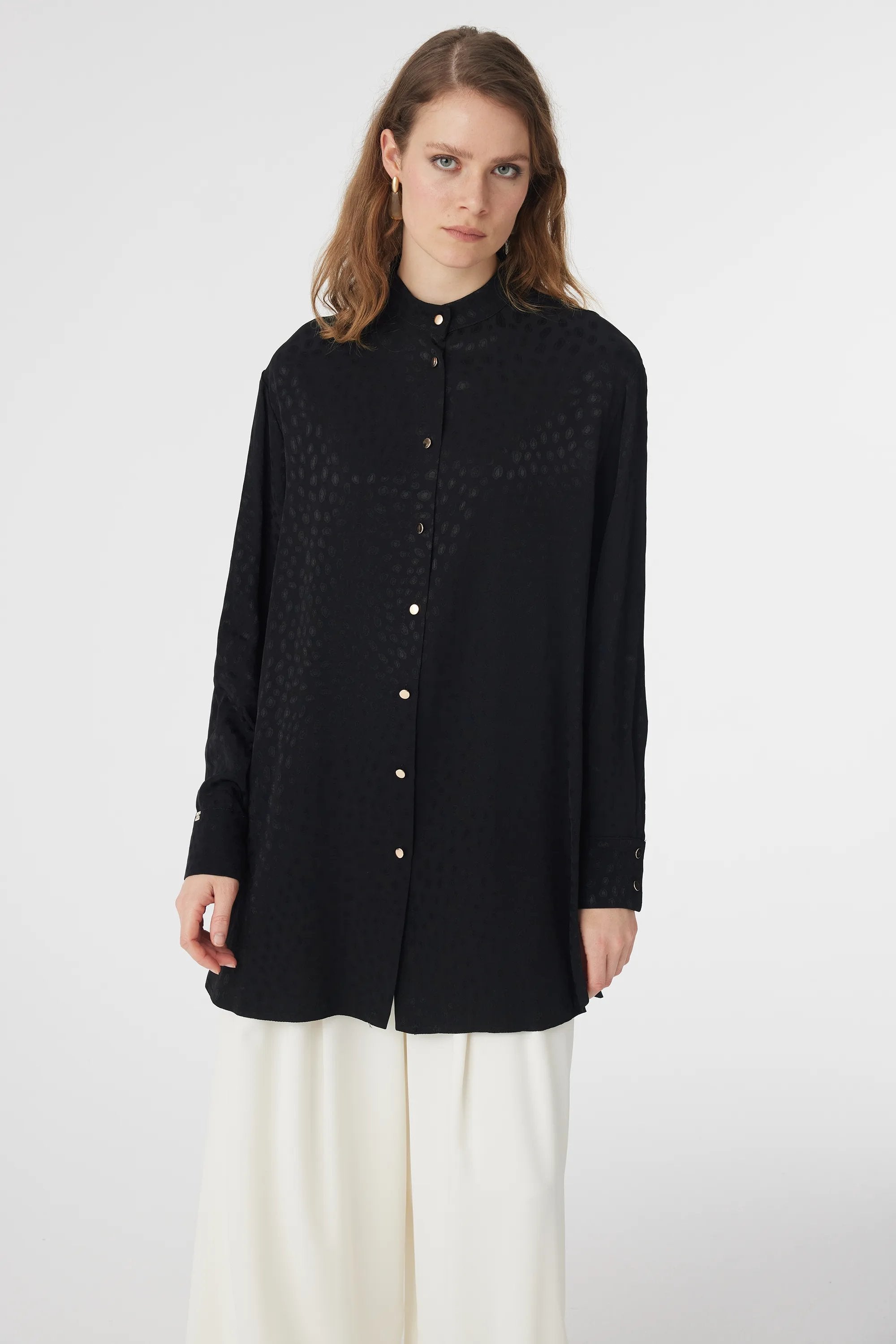 Hakim Yaka Düğmeli Desenli Siyah Gömlek 0124