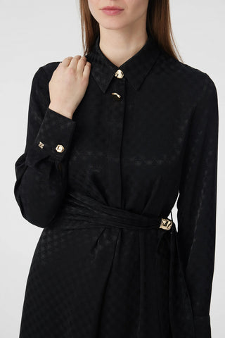 Kemerli Jakar Detaylı Siyah Elbise 0535