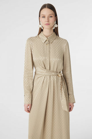 Halka Motifli Kuşaklı Ekru Elbise 0495