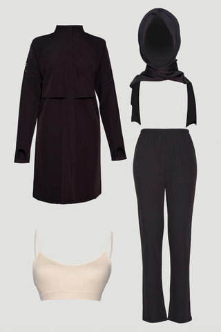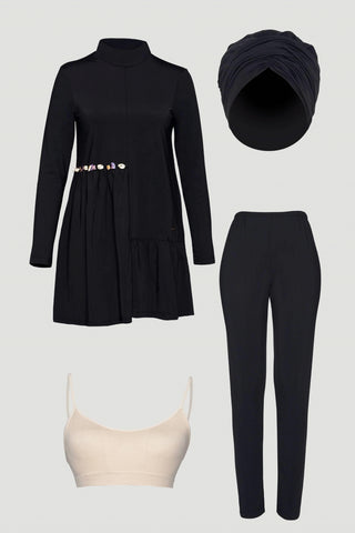 Deniz Kabuğu Detaylı Tam Kapalı Tesettür Mayo Siyah Plaj Giyim 0014