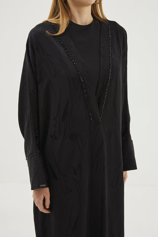 Işleme Detaylı Lacivert Ferace Siyah Pardesü 0078