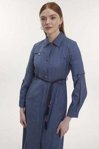 Gömlek Yaka Düğmeli Indigo Pardesü 13777