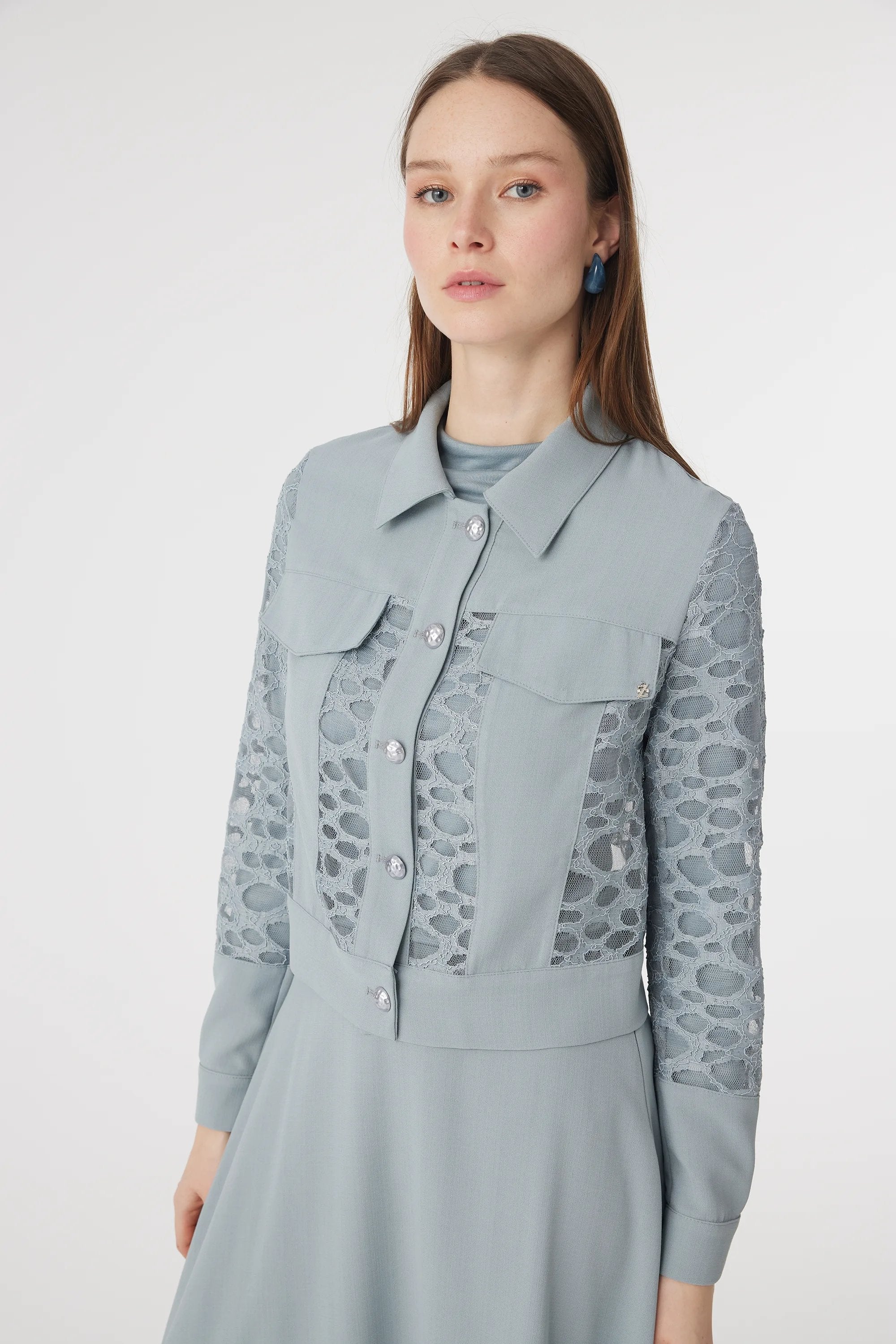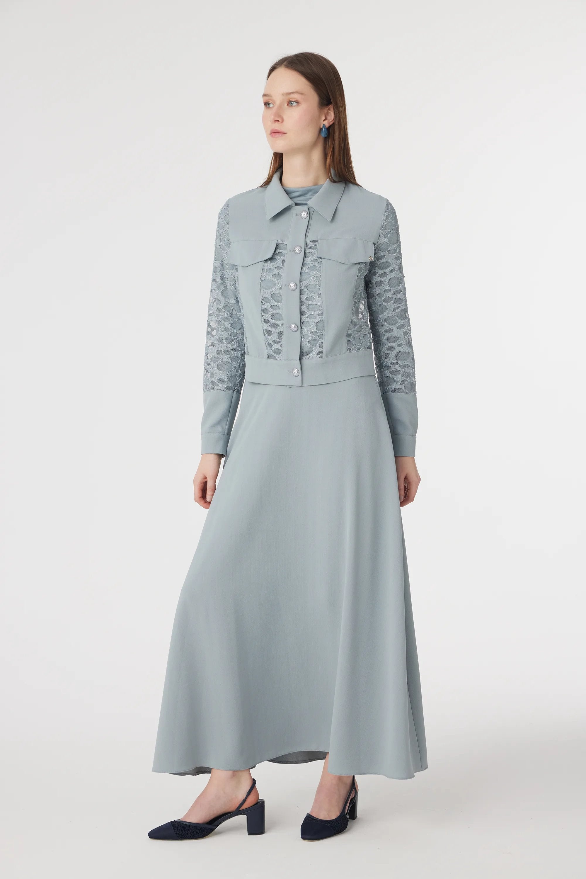 Dantel Panelli Düğmeli Kemerli Açelya Takım 1742
