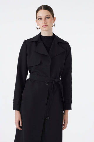 Düğme Detaylı Kemerli Trençkot Siyah Zühre 13860