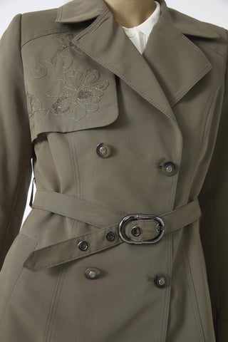 Işleme Detaylı Kemerli Haki Trençkot 13812