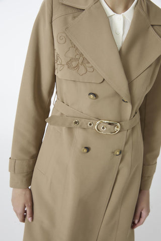 Işleme Detaylı Kemerli Vizon Trençkot 13812
