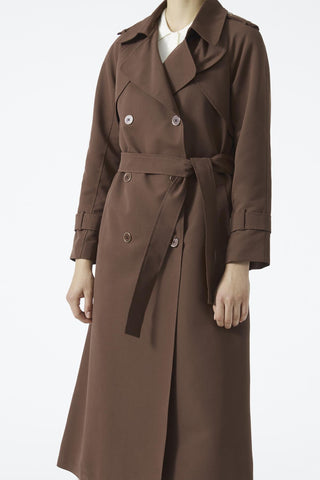 Kruvaze Yaka Kol Işleme Detaylı Kahve Trençkot 13724
