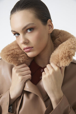 Kürk Yaka Fermuar Detaylı Deri Taş Trençkot 13527