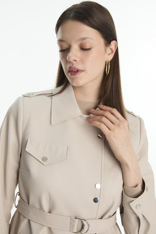 Ceket Yaka Kol Detaylı Vizon Trençkot 12667