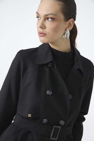 Gömlek Yaka Kuşaklı Siyah Trençkot 13751