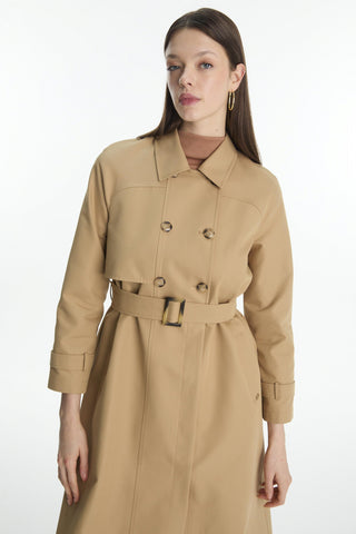 Düğme Detaylı Kemerli Trençkot Vizon Zühre 13860