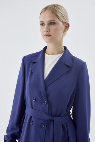 Kruvaze Yaka Kol Detaylı Kuşaklı Kap Menekşe Trençkot 13761