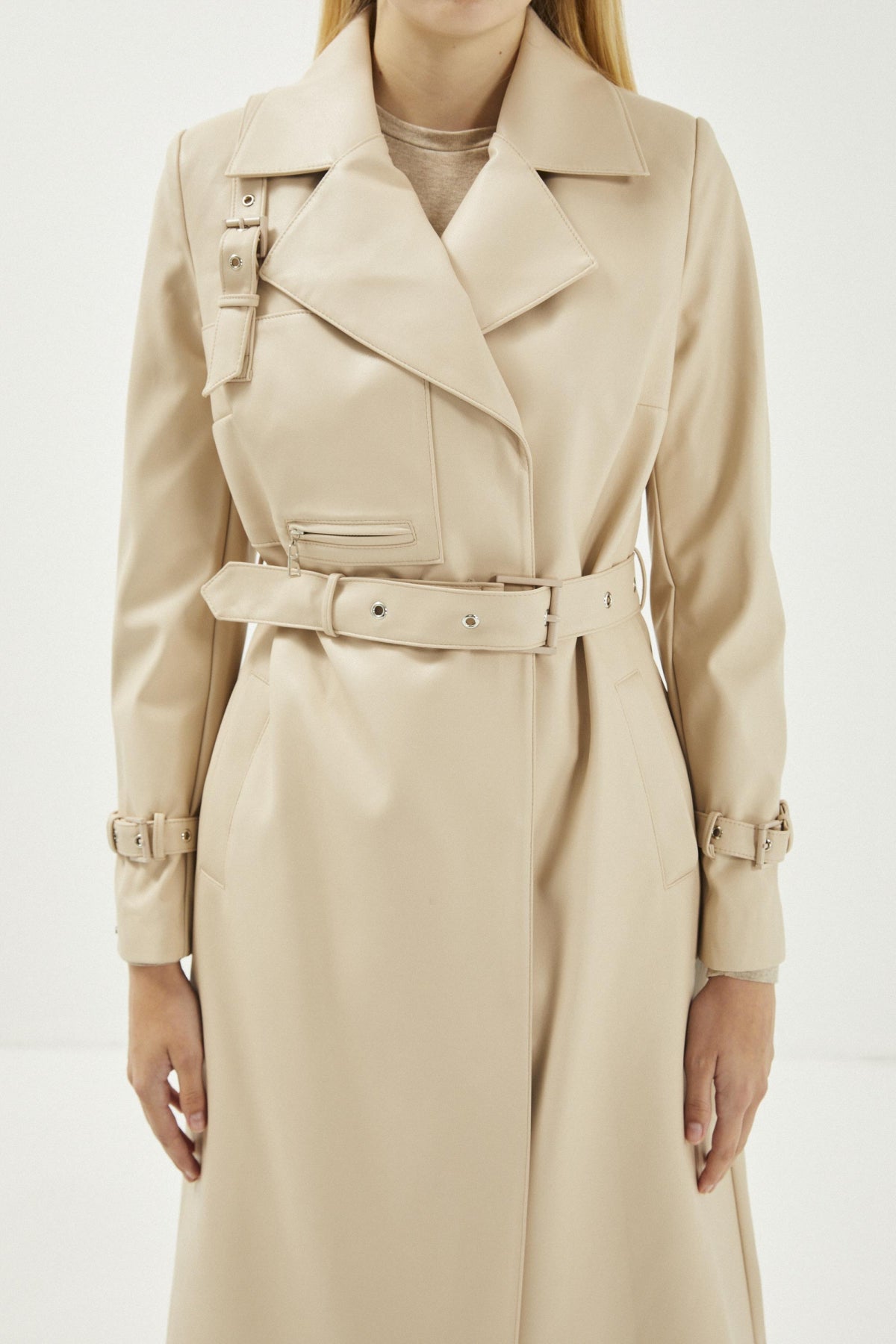 Kruvaze Yaka Kol Detaylı Deri Trençkot 13014 Özellikleri