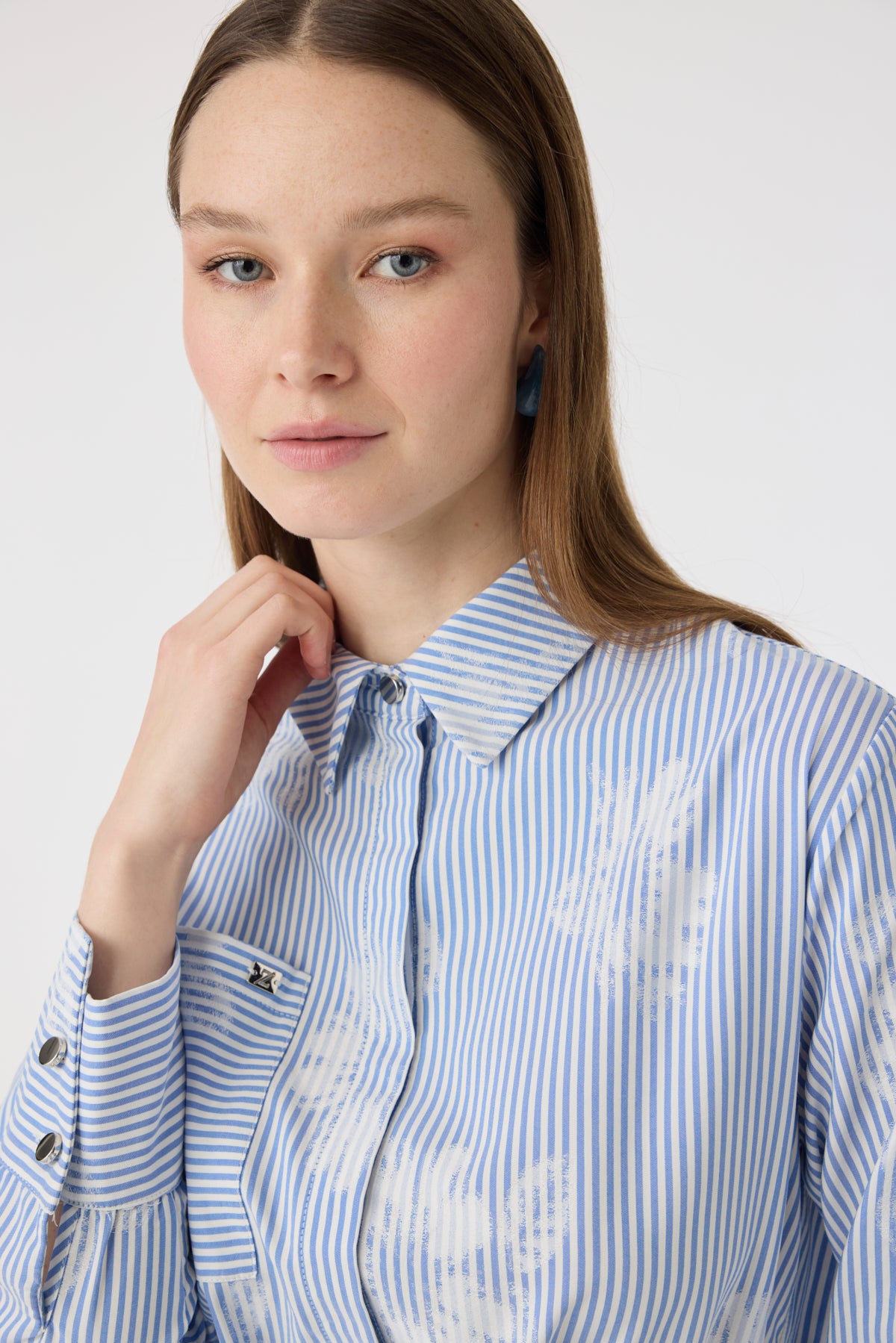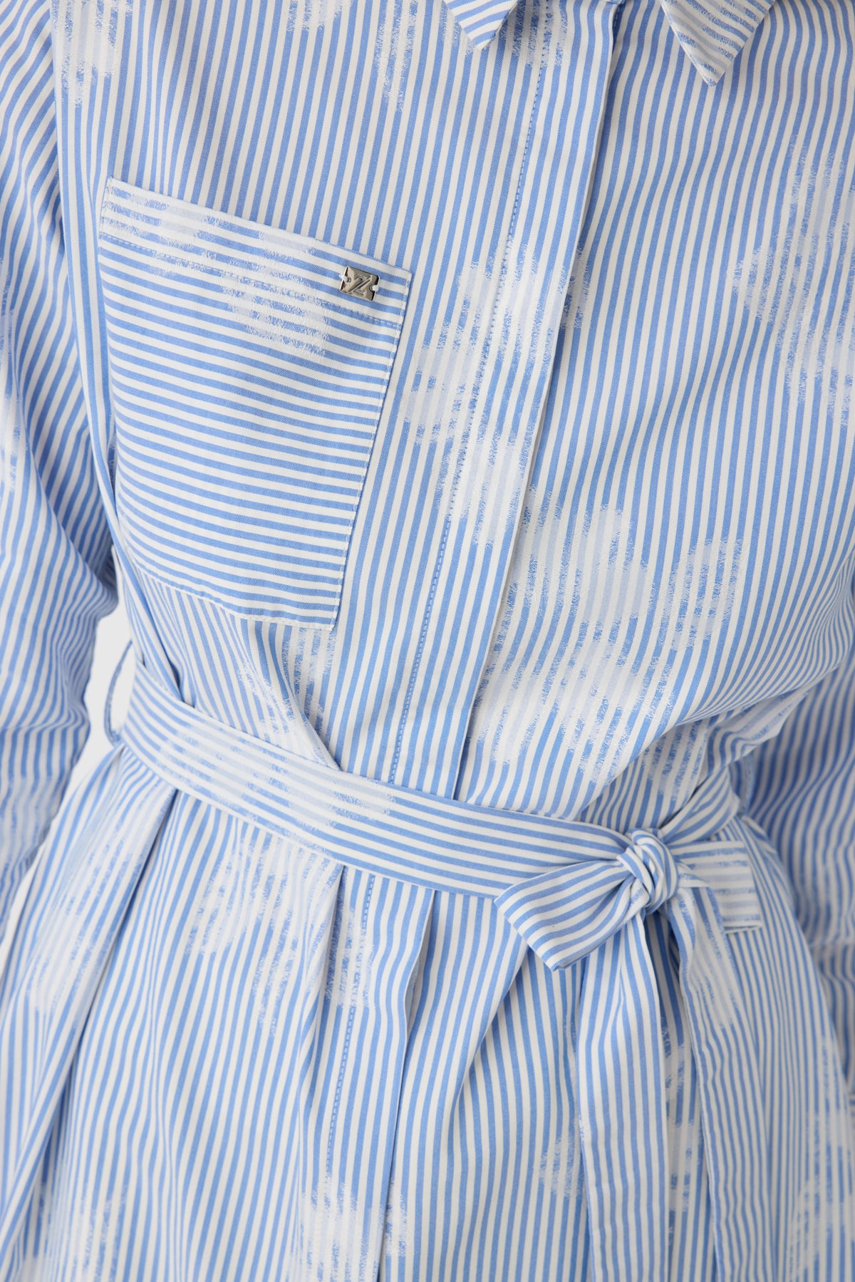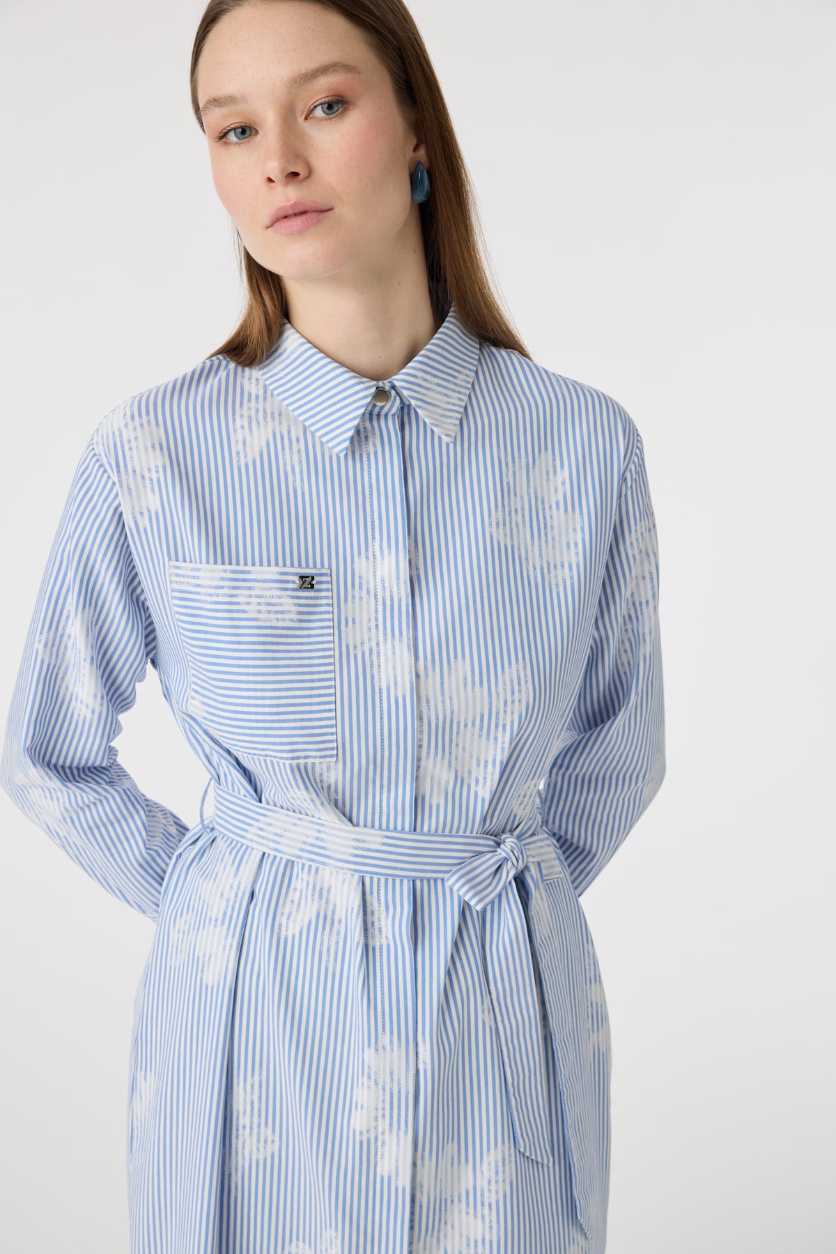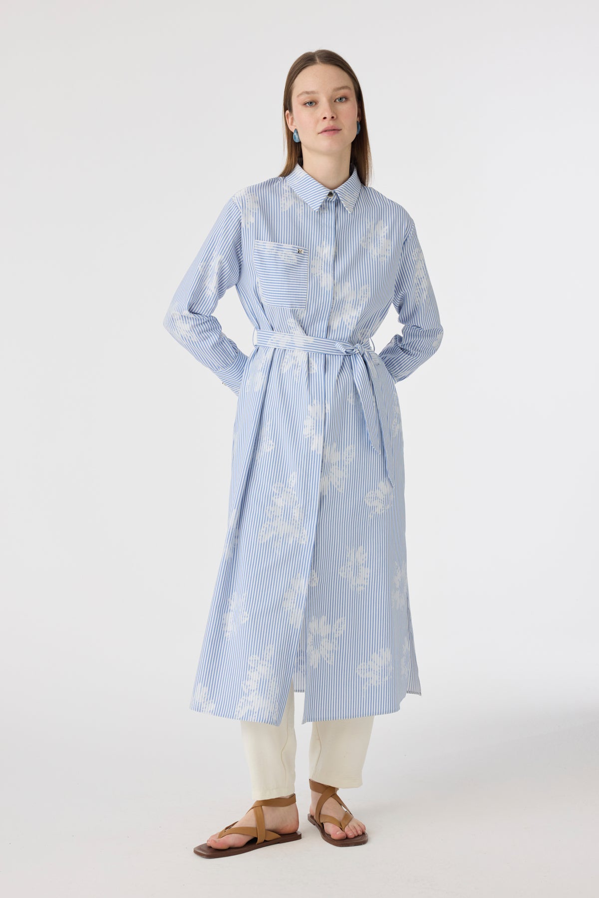 Çizgi Desenli Kemerli Gömlek Elbise Mavi Tunik 1616