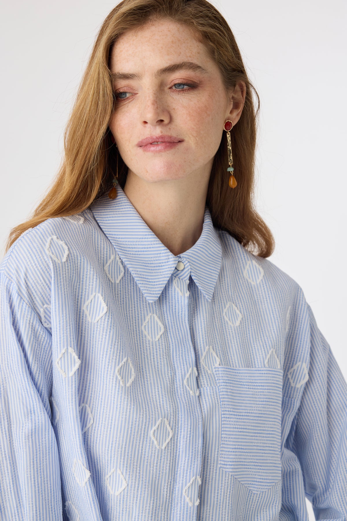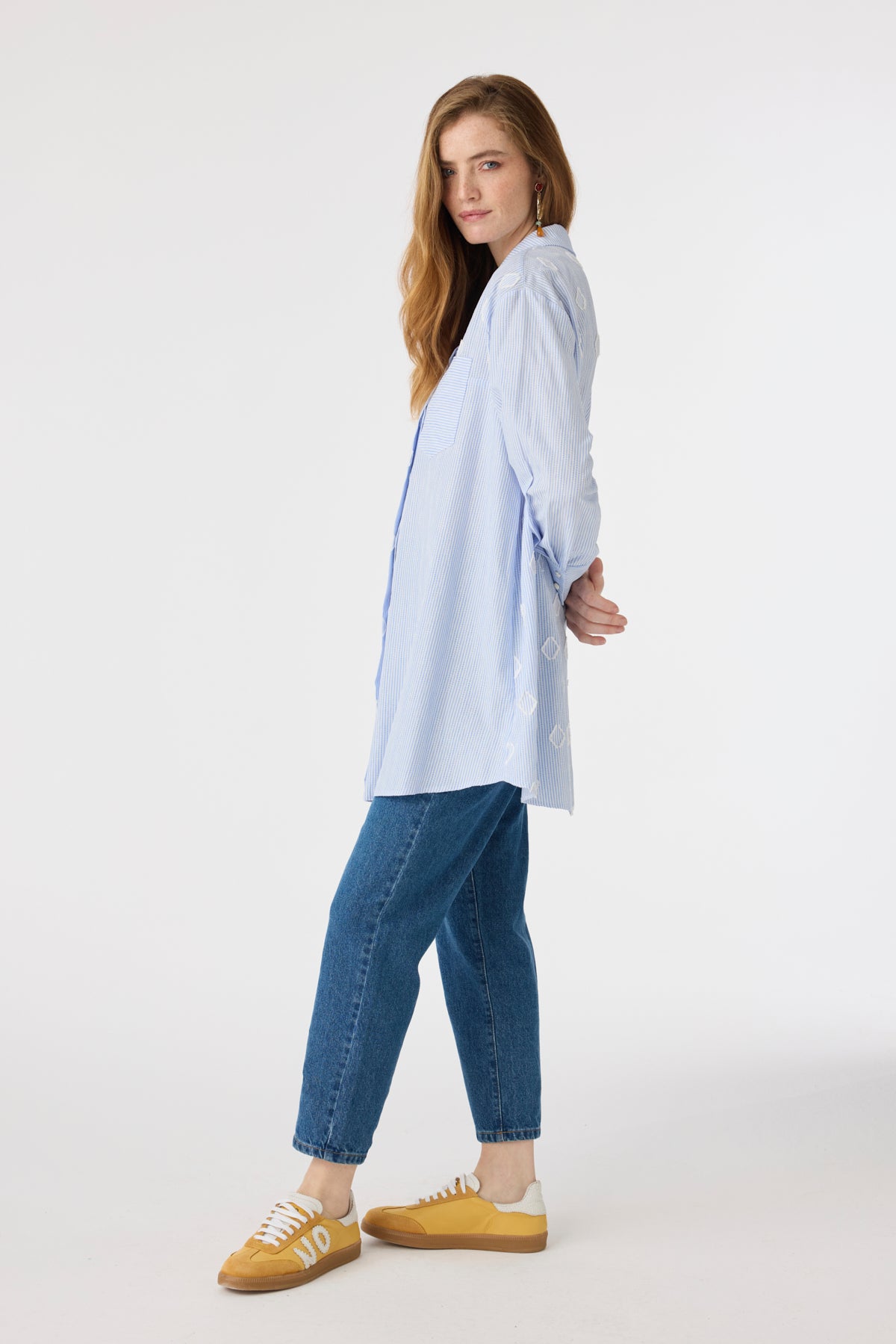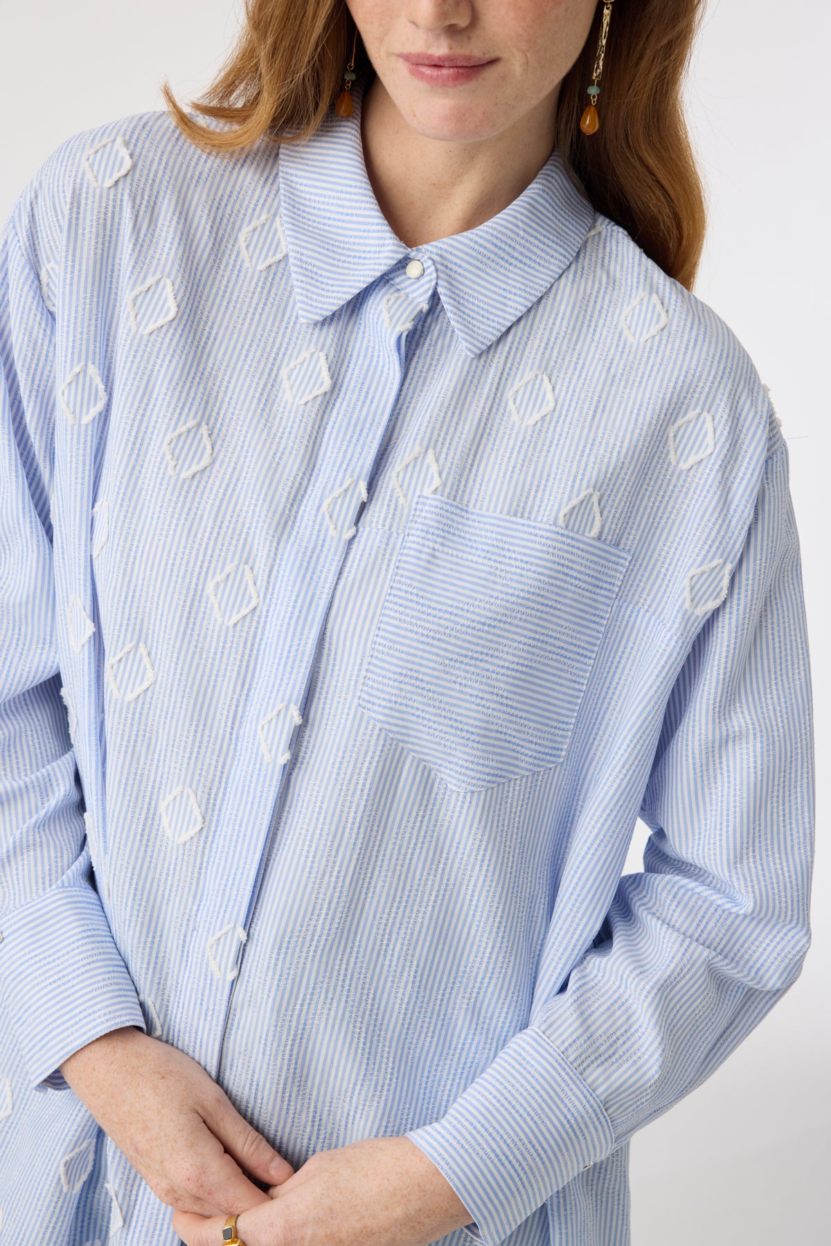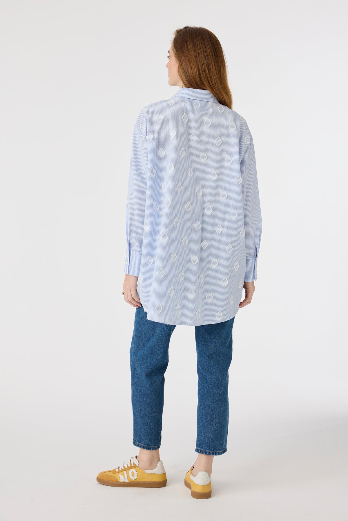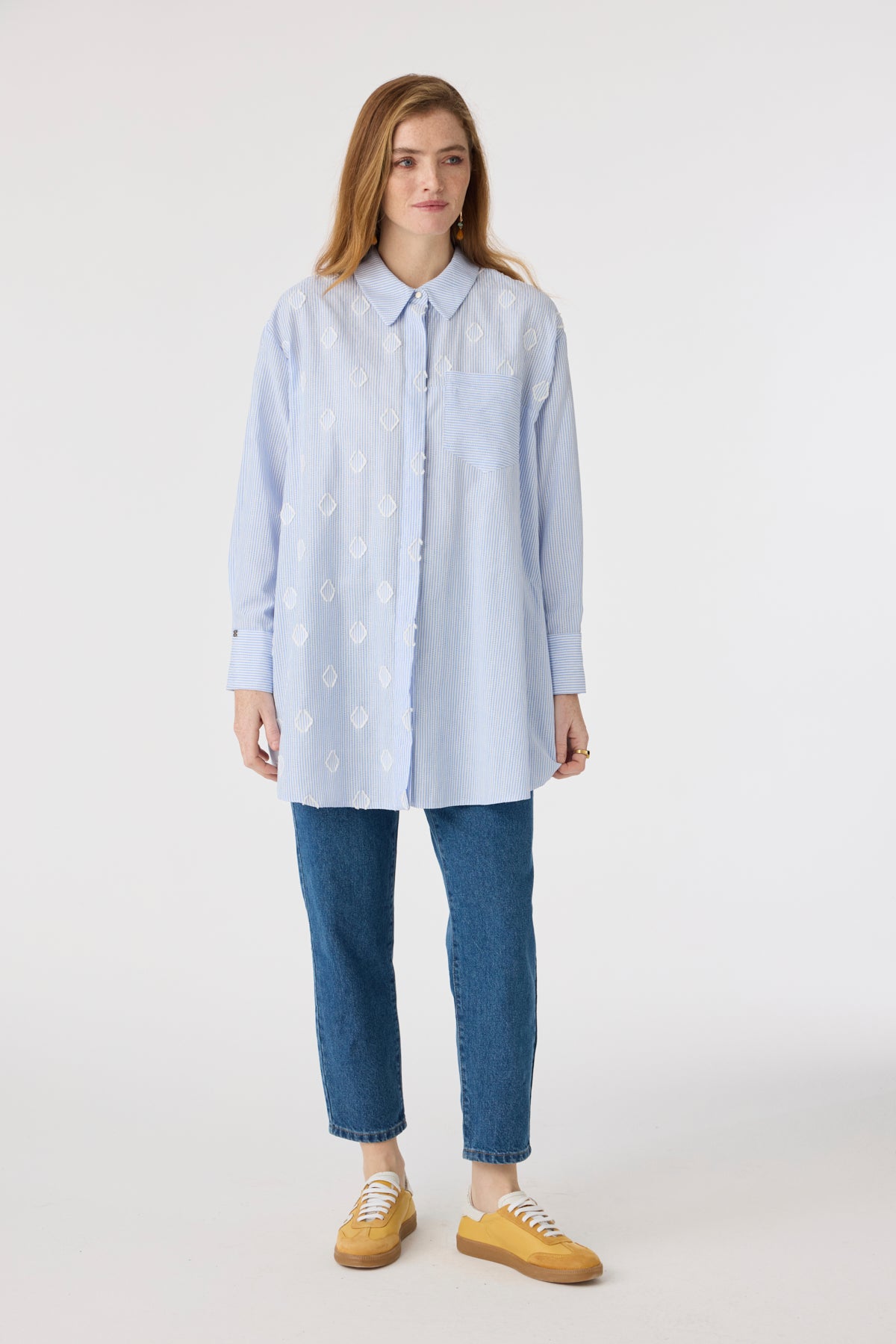 Çizgili Jakarlı Cepli Uzun Form Mavi Tunik 1643