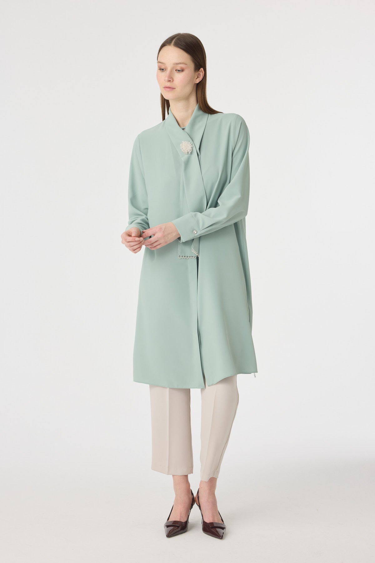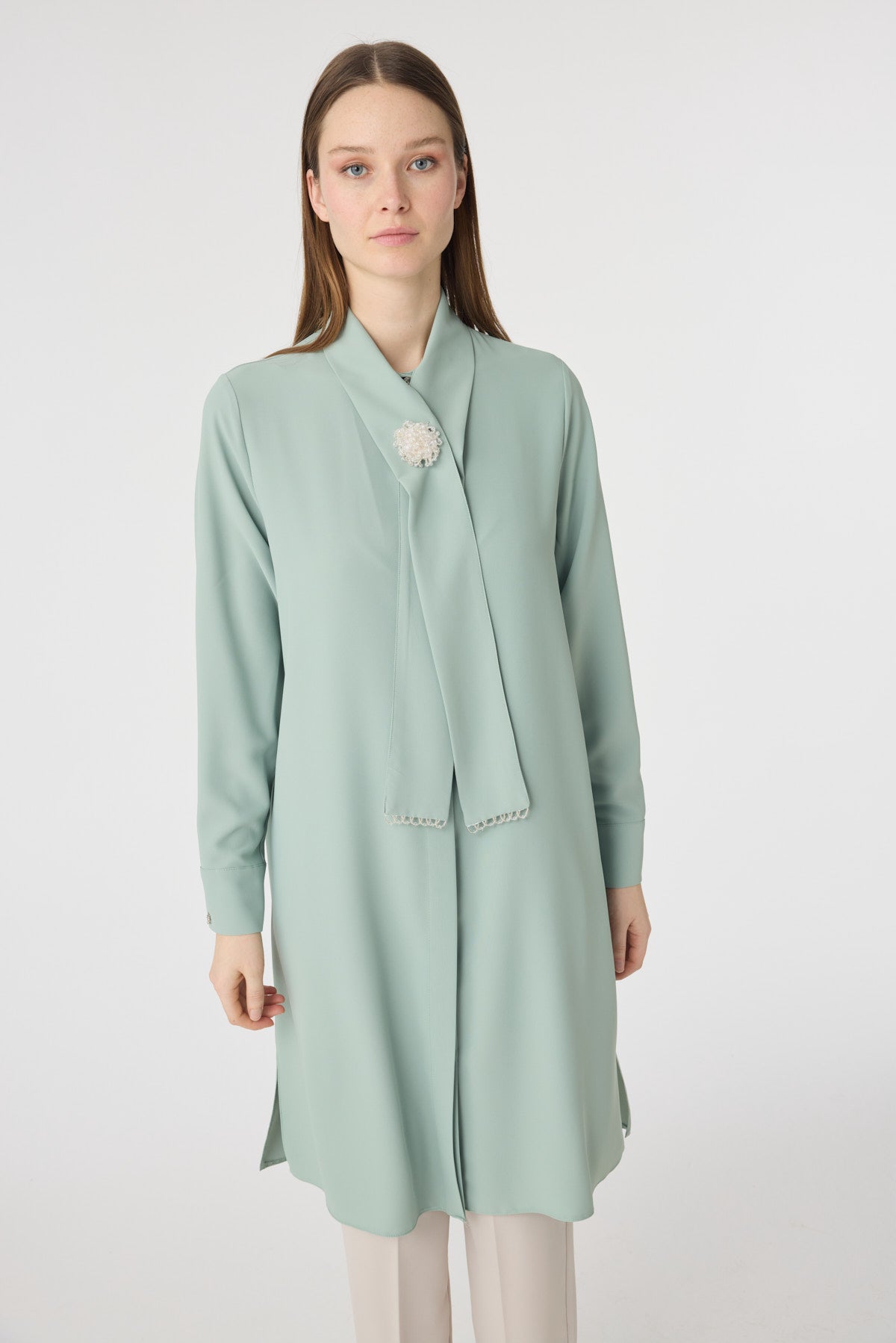 İnci Detaylı Şal Yaka Ekru Tunik Mint Tunik 1672