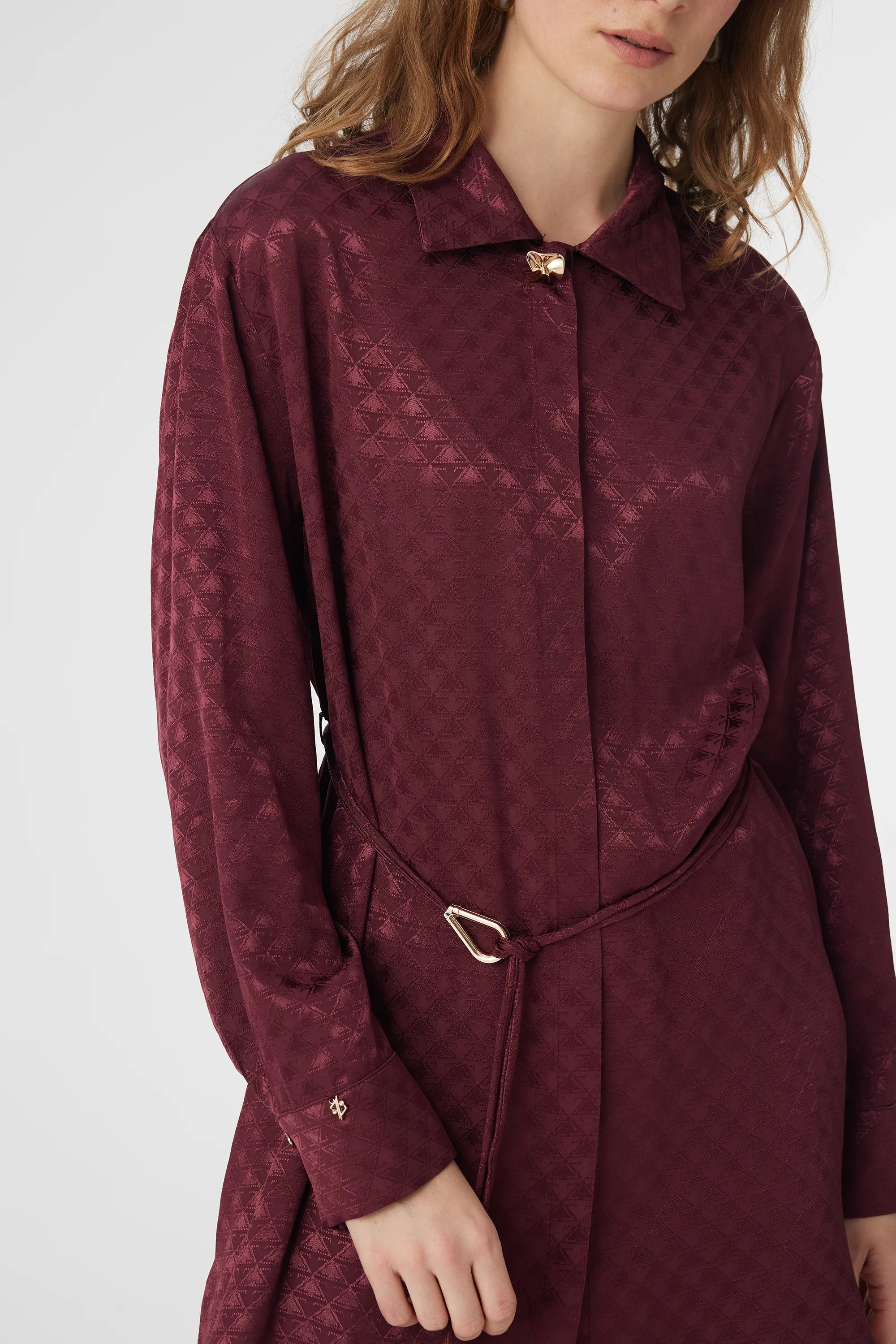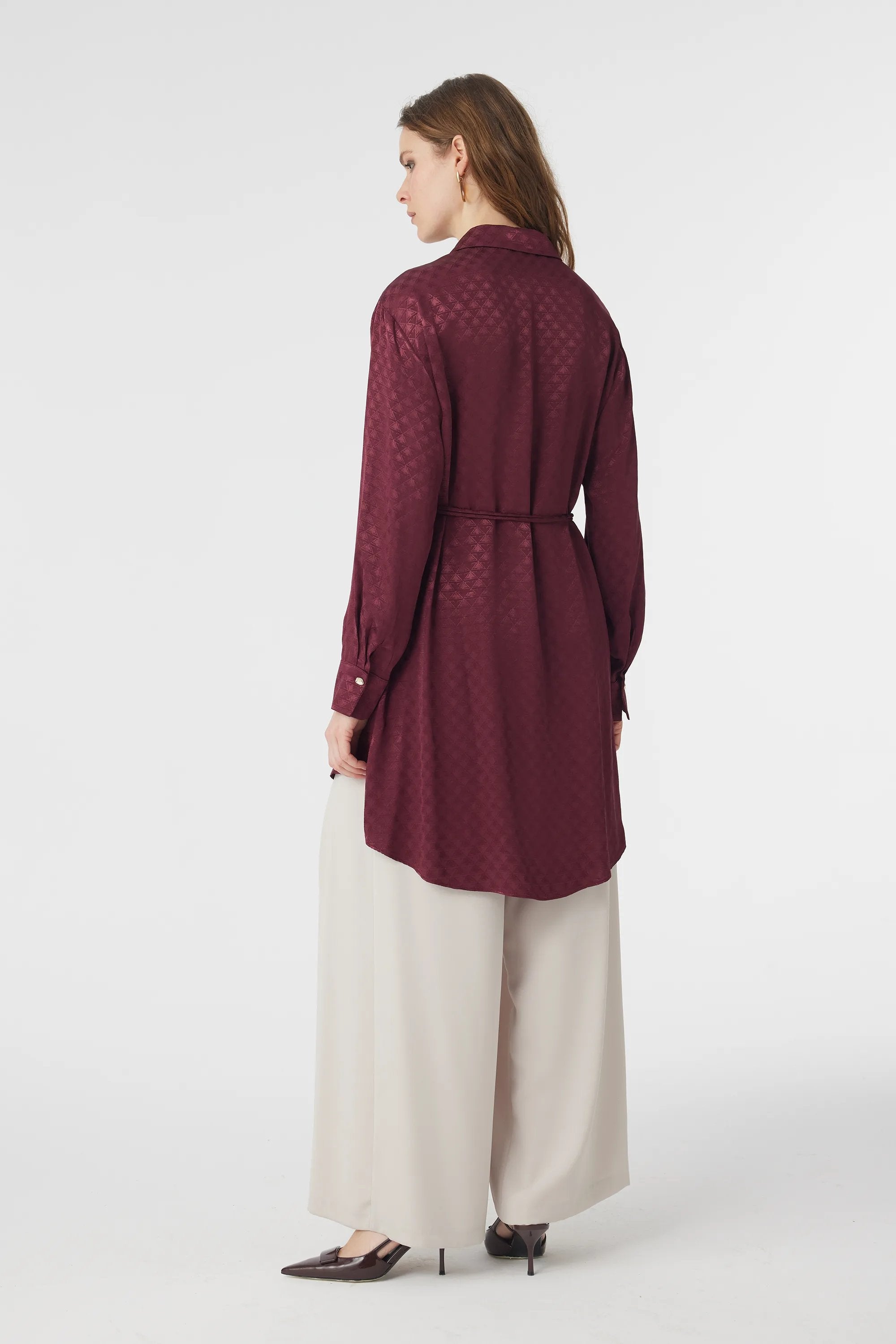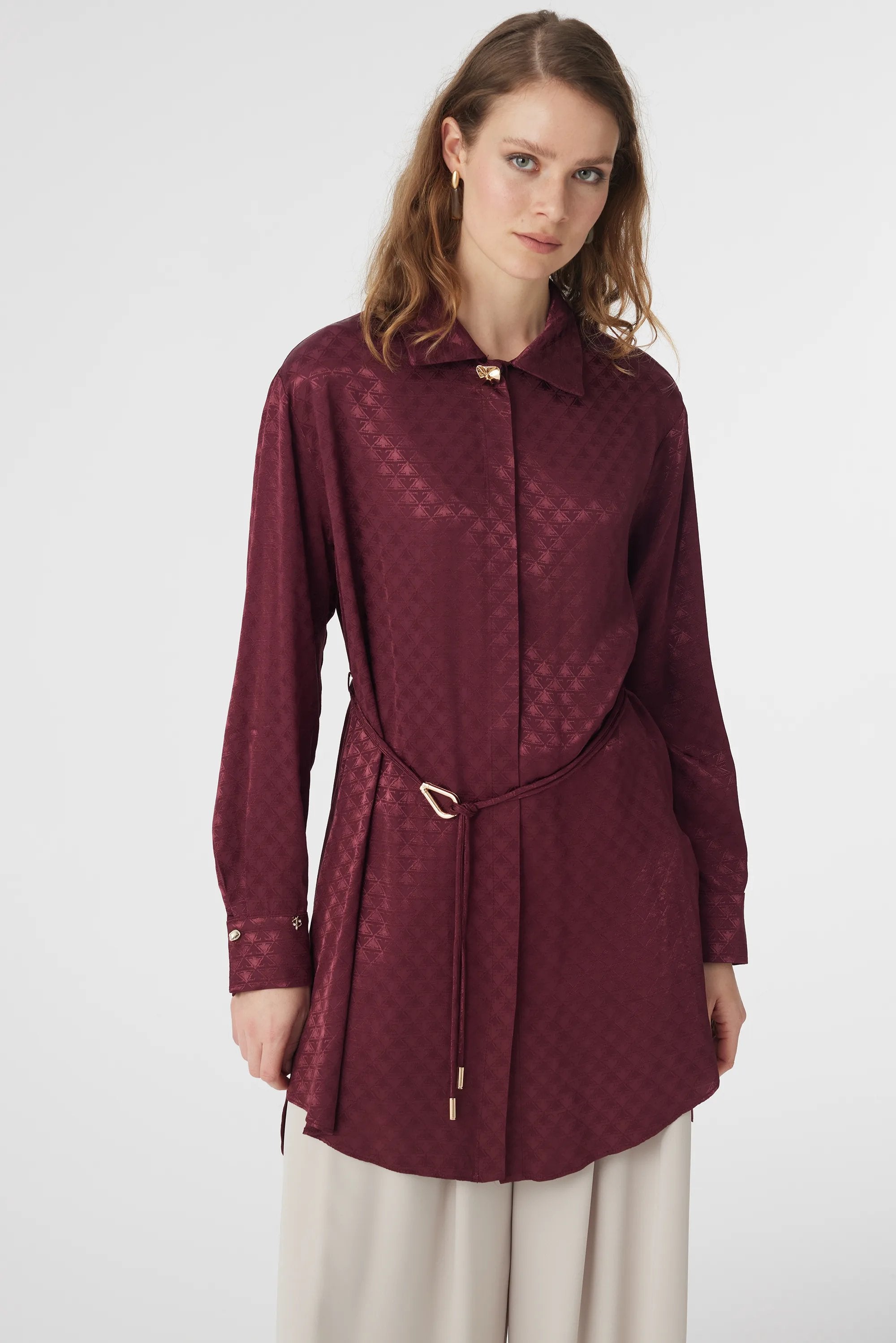 Jakarlı Desenli Kemer Detaylı Bordo Tunik 1670