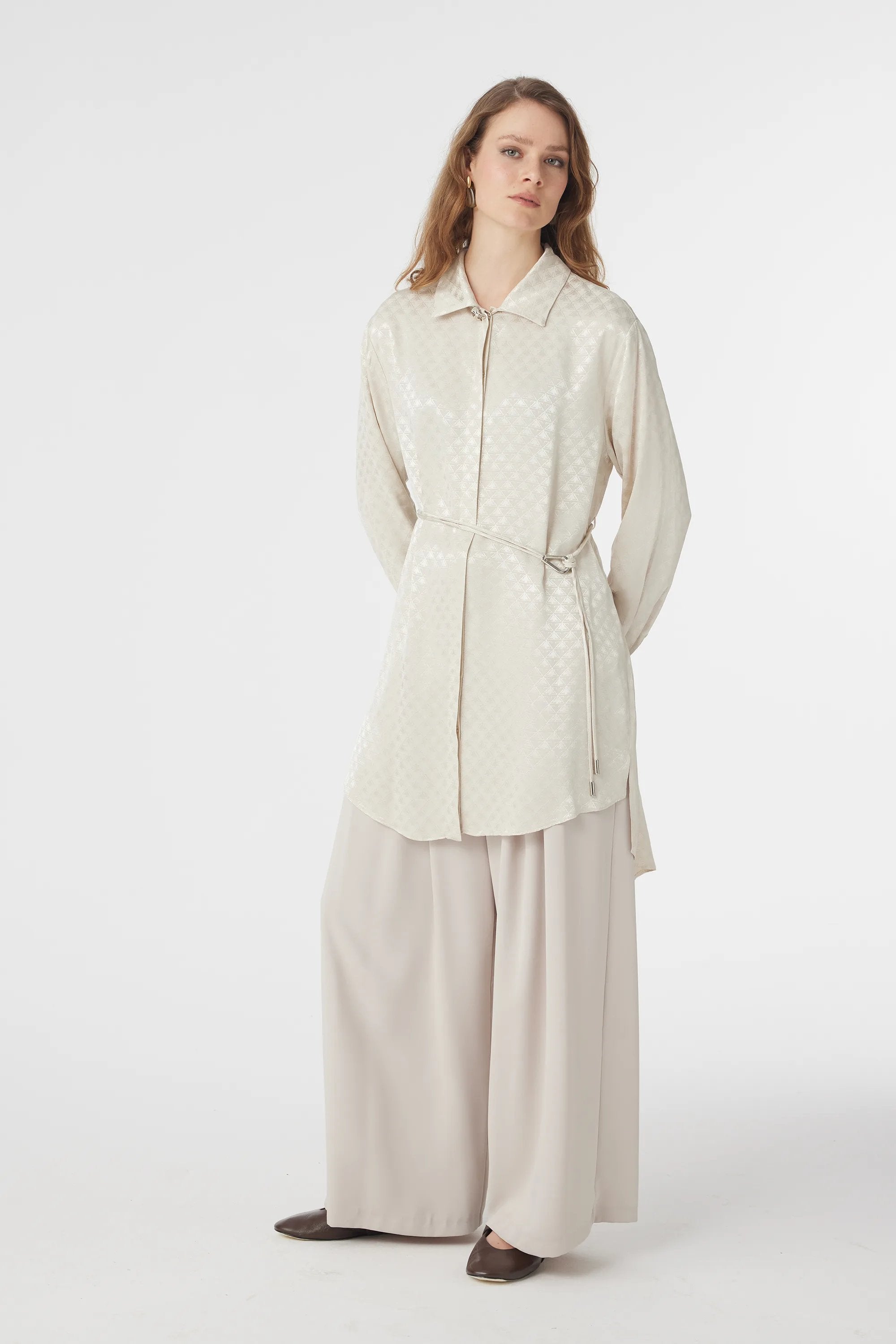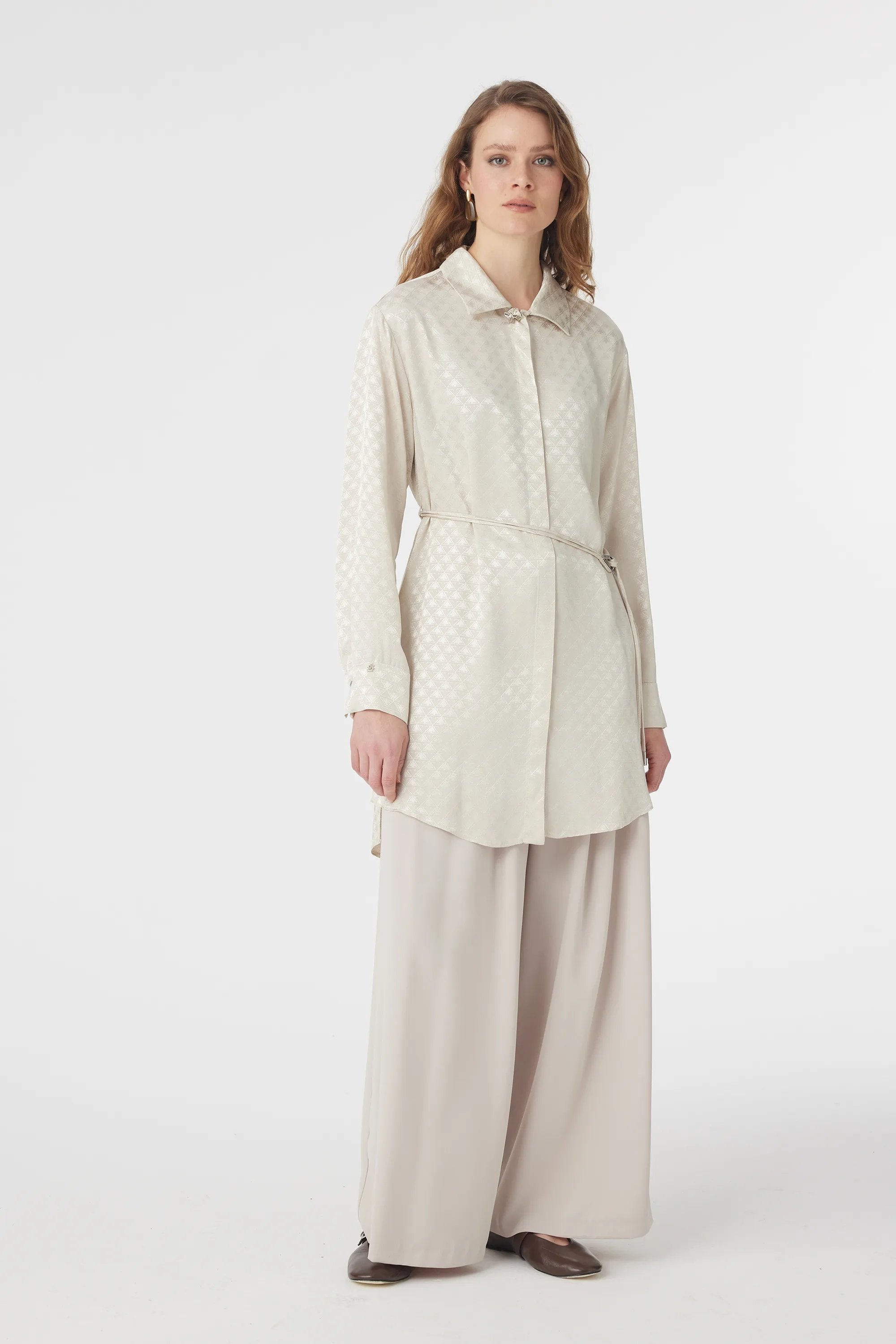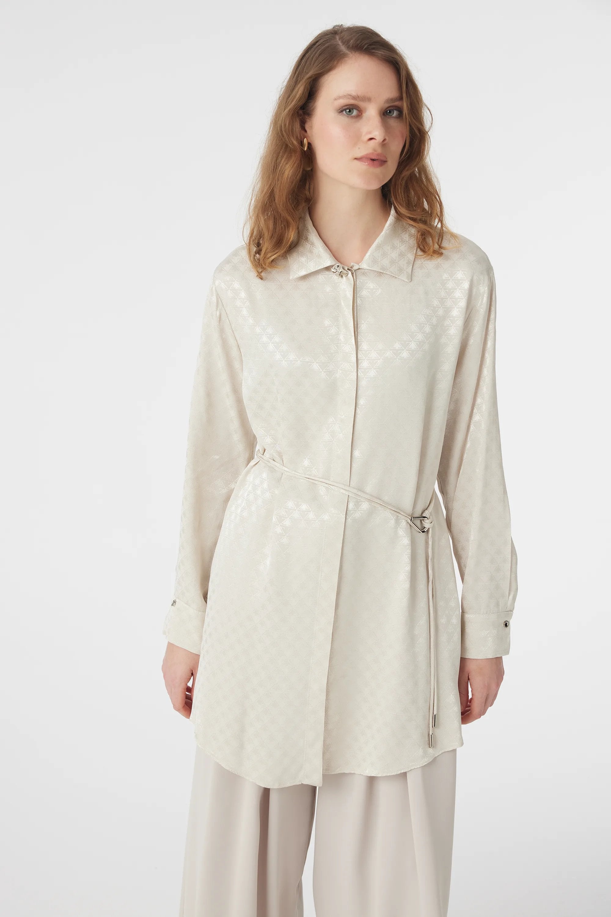 Jakarlı Desenli Kemer Detaylı Taş Tunik 1670