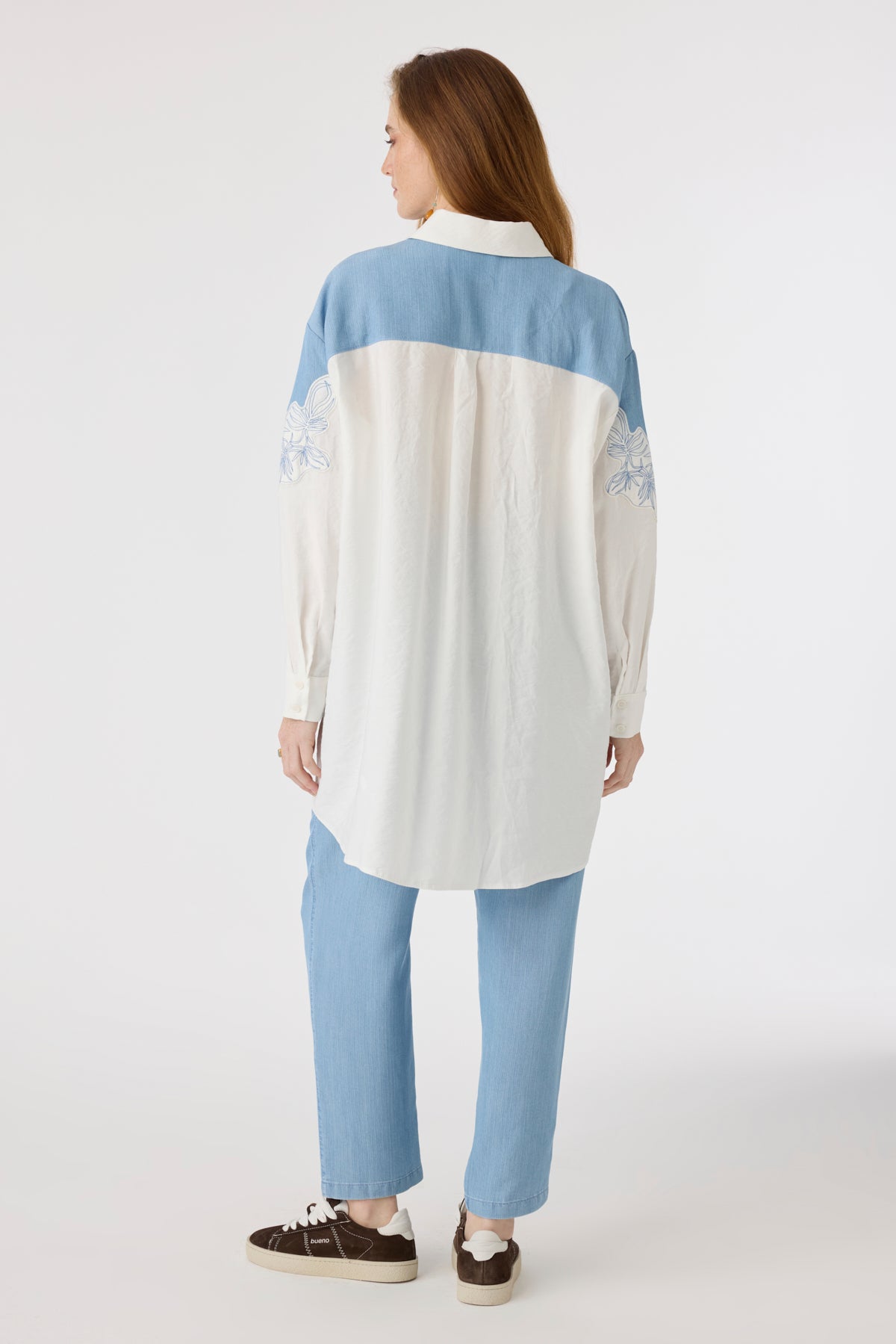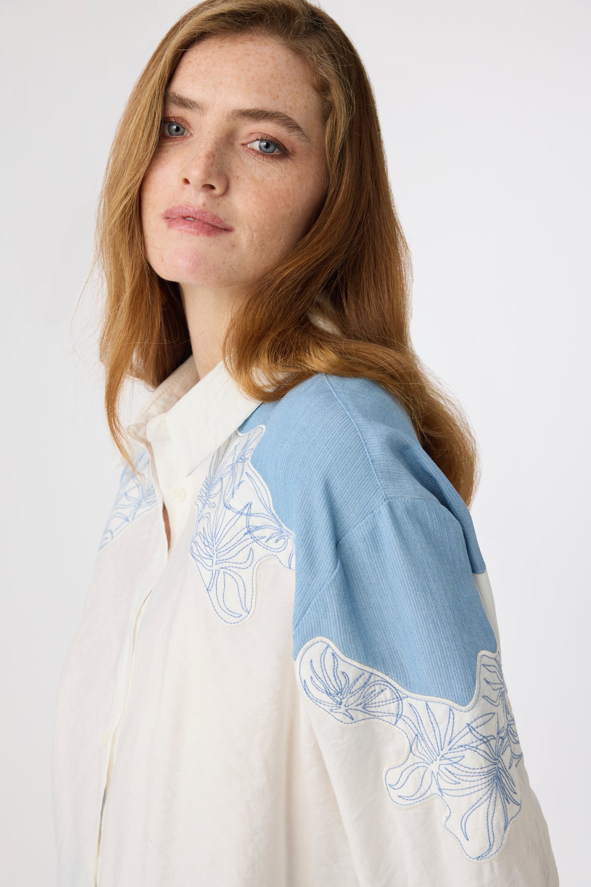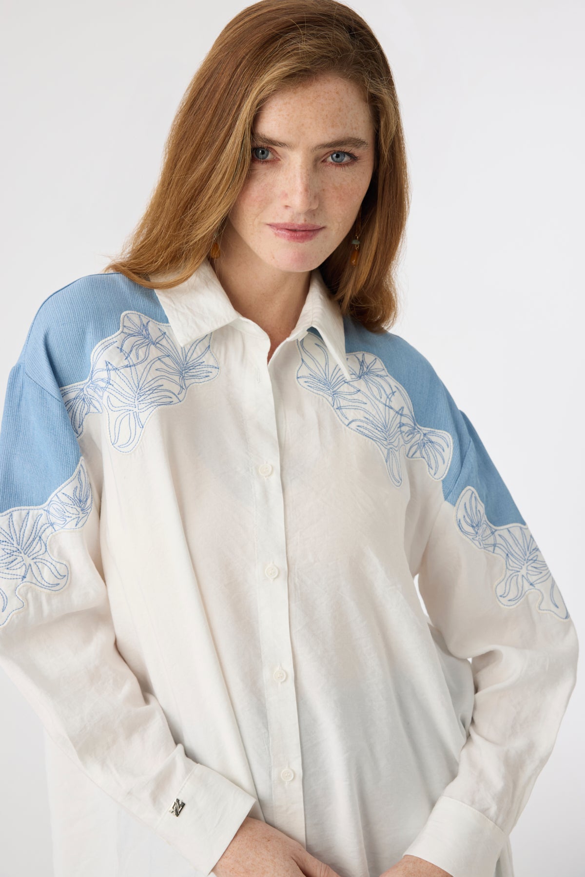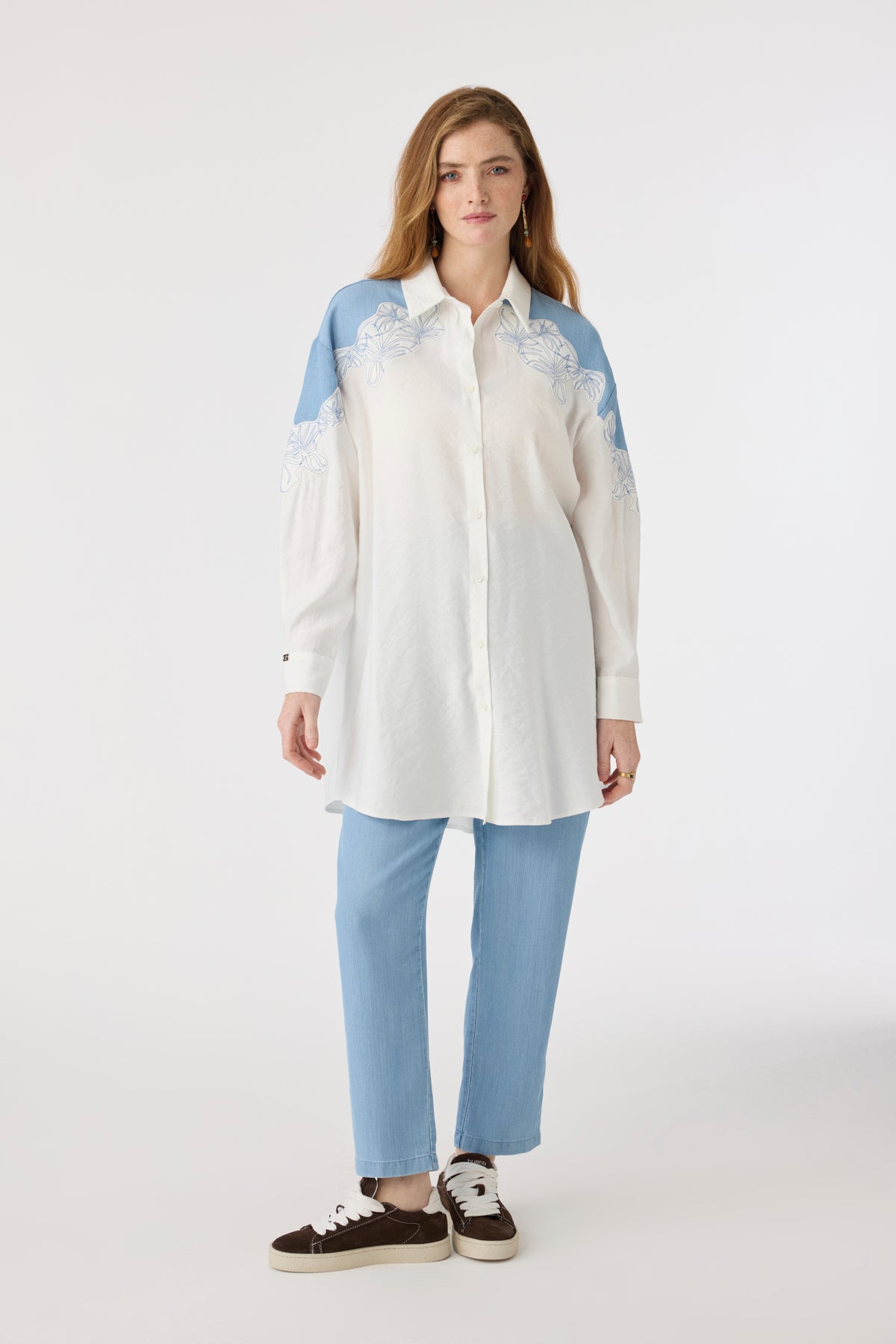 Nakış İşlemeli Kontrast Detaylı Klasik Yaka Ekru Tunik 1630