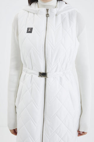 Kapüşonlu Uzun Kapitone Şişme Ekru Yelek 0060