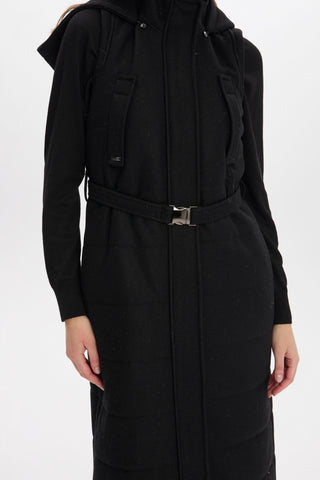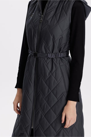 Kapüşonlu Uzun Kapitone Şişme Siyah Yelek 0060