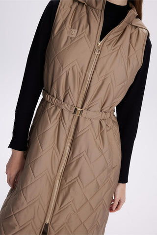 Kapüşonlu Uzun Kapitone Şişme Vizon Yelek 0060