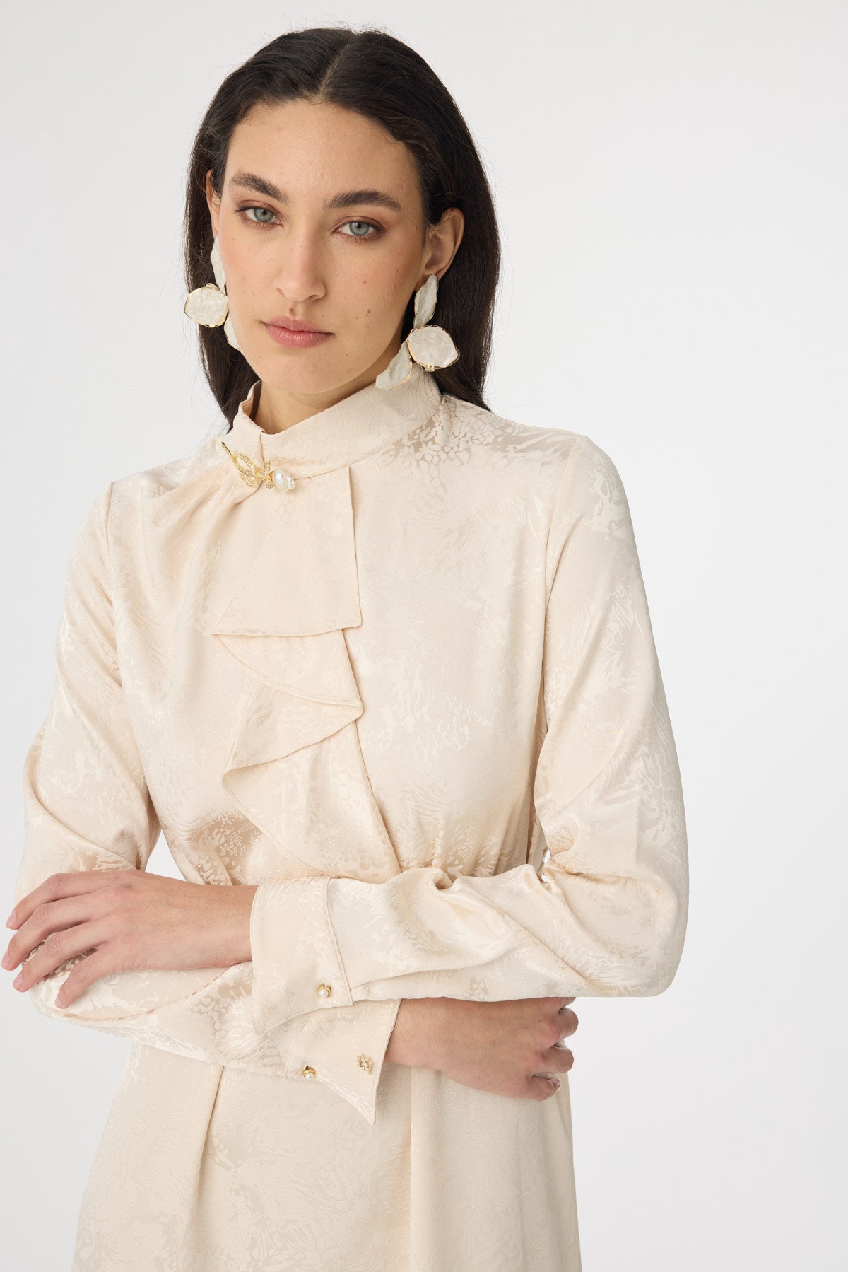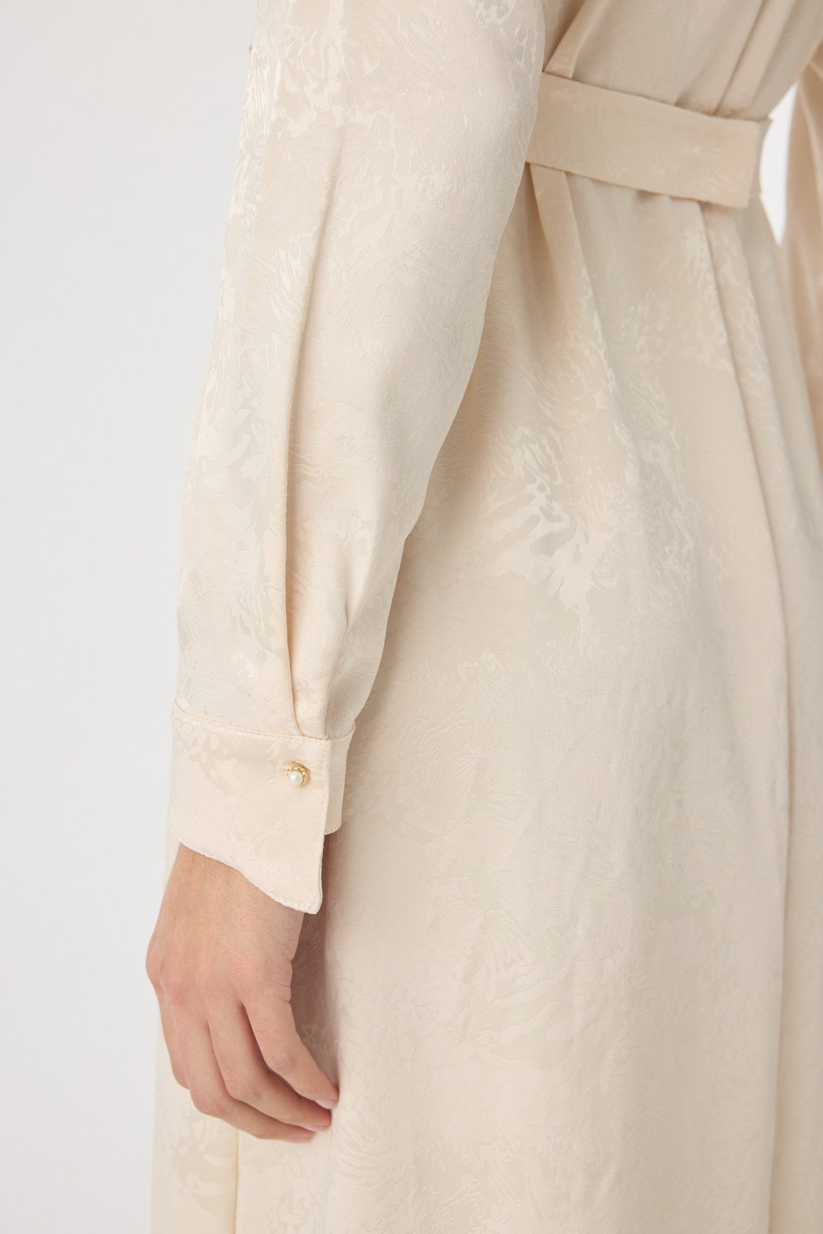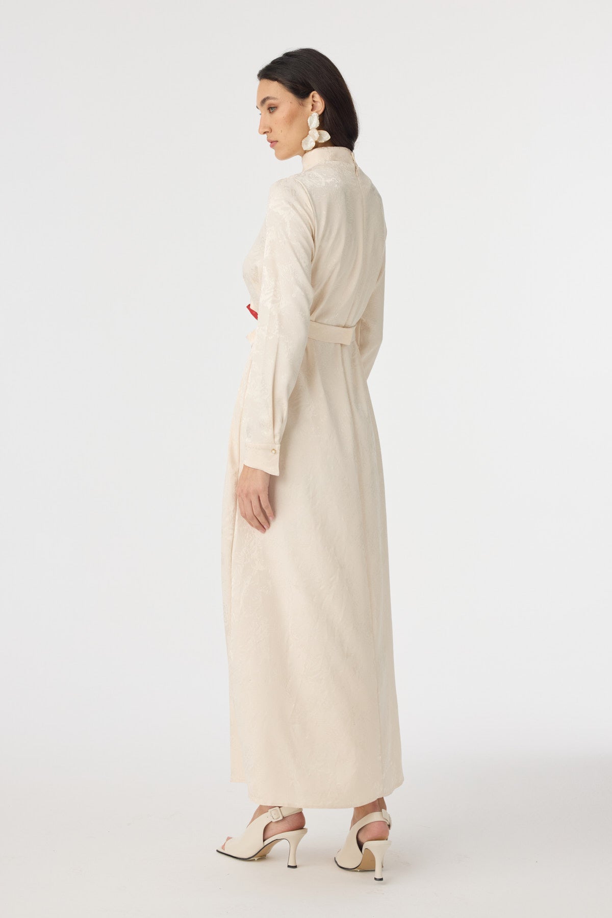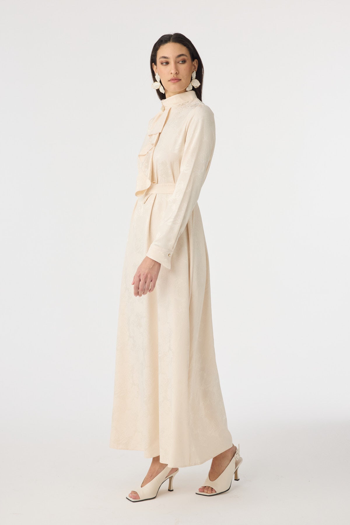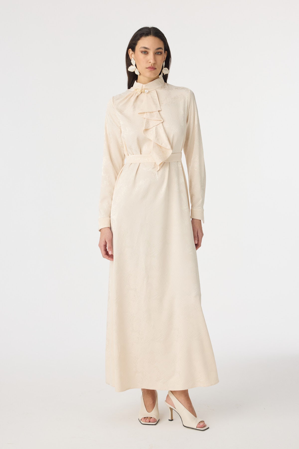 Fırfır Detaylı Kuşaklı Desenli Vanilya Elbise 0563