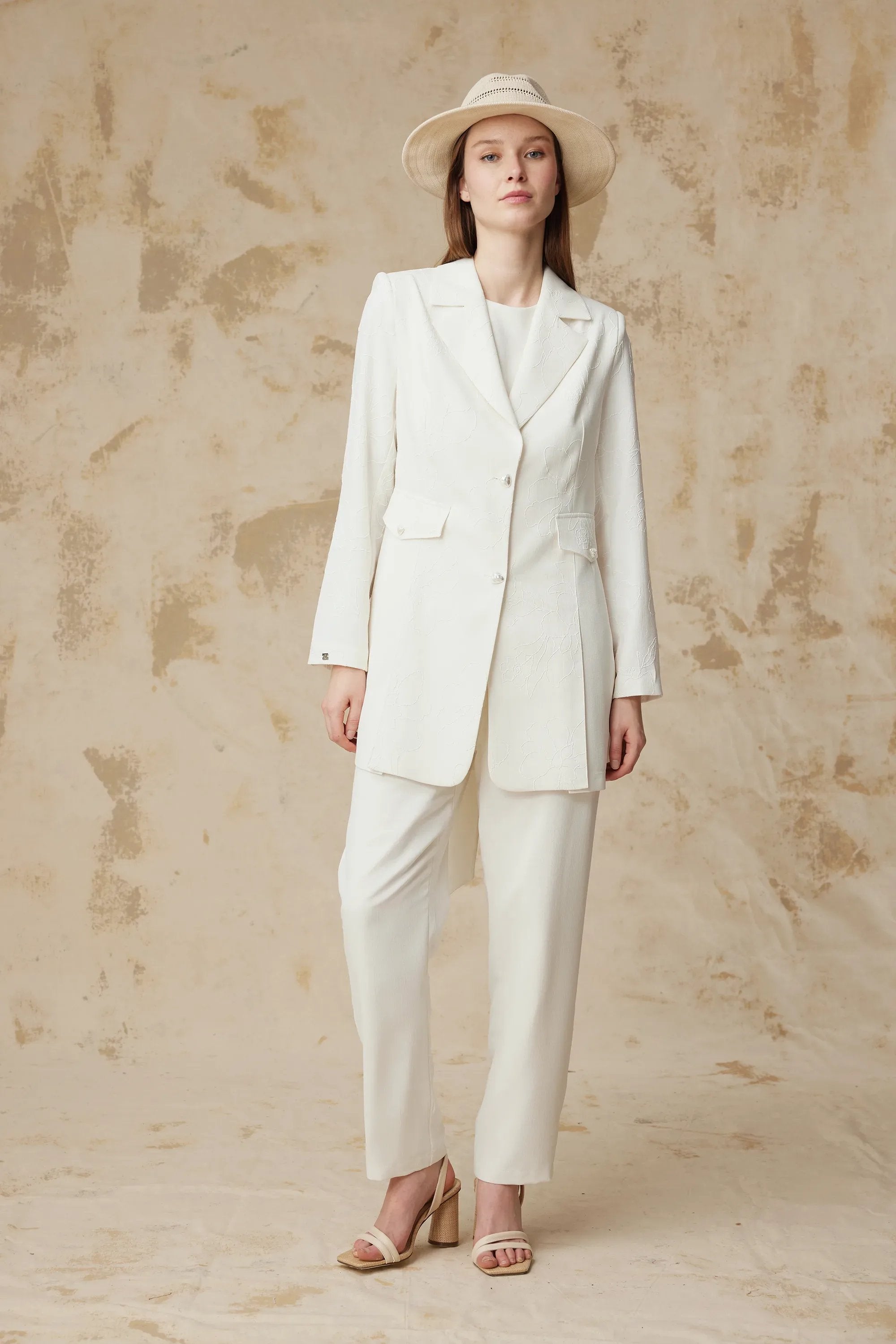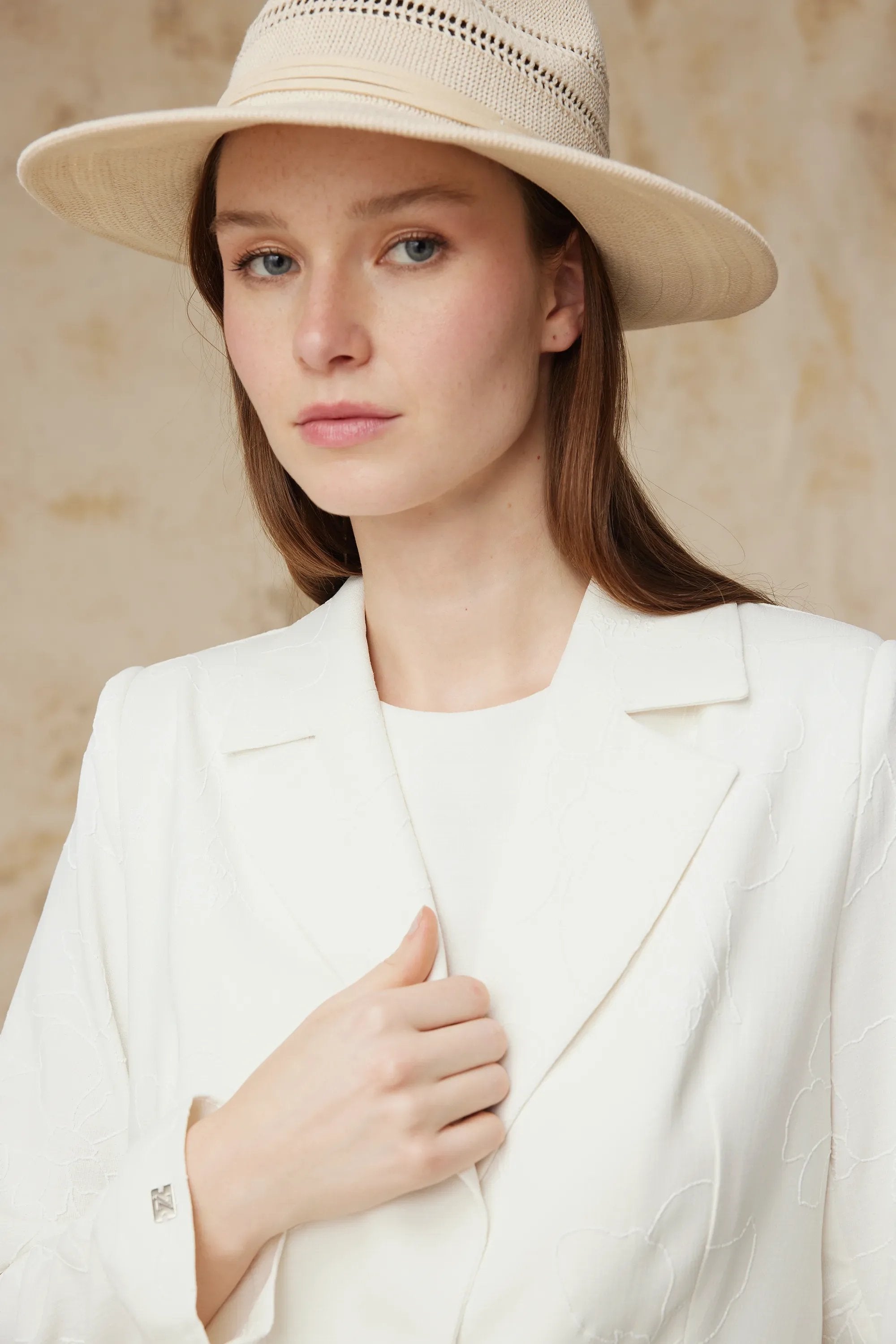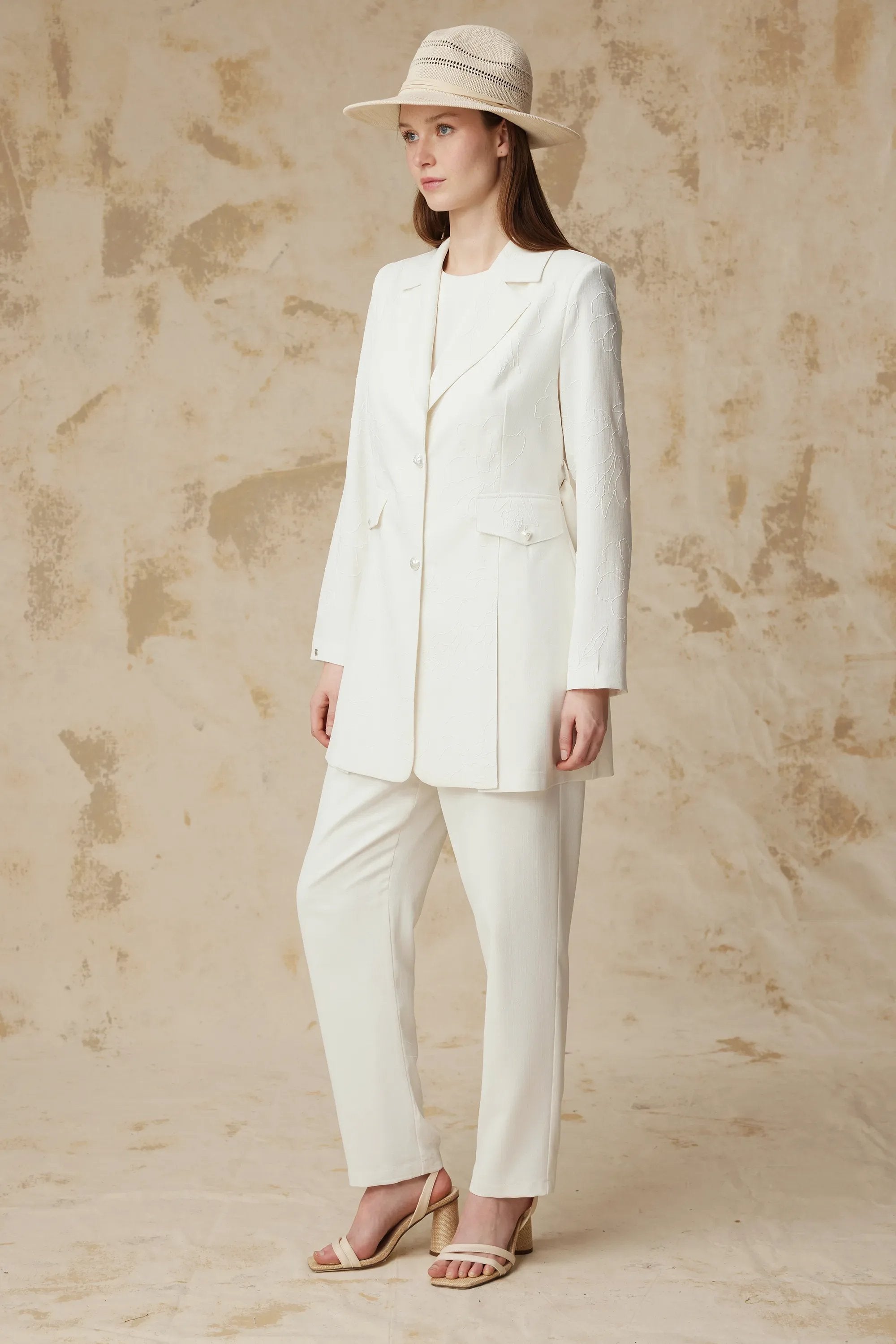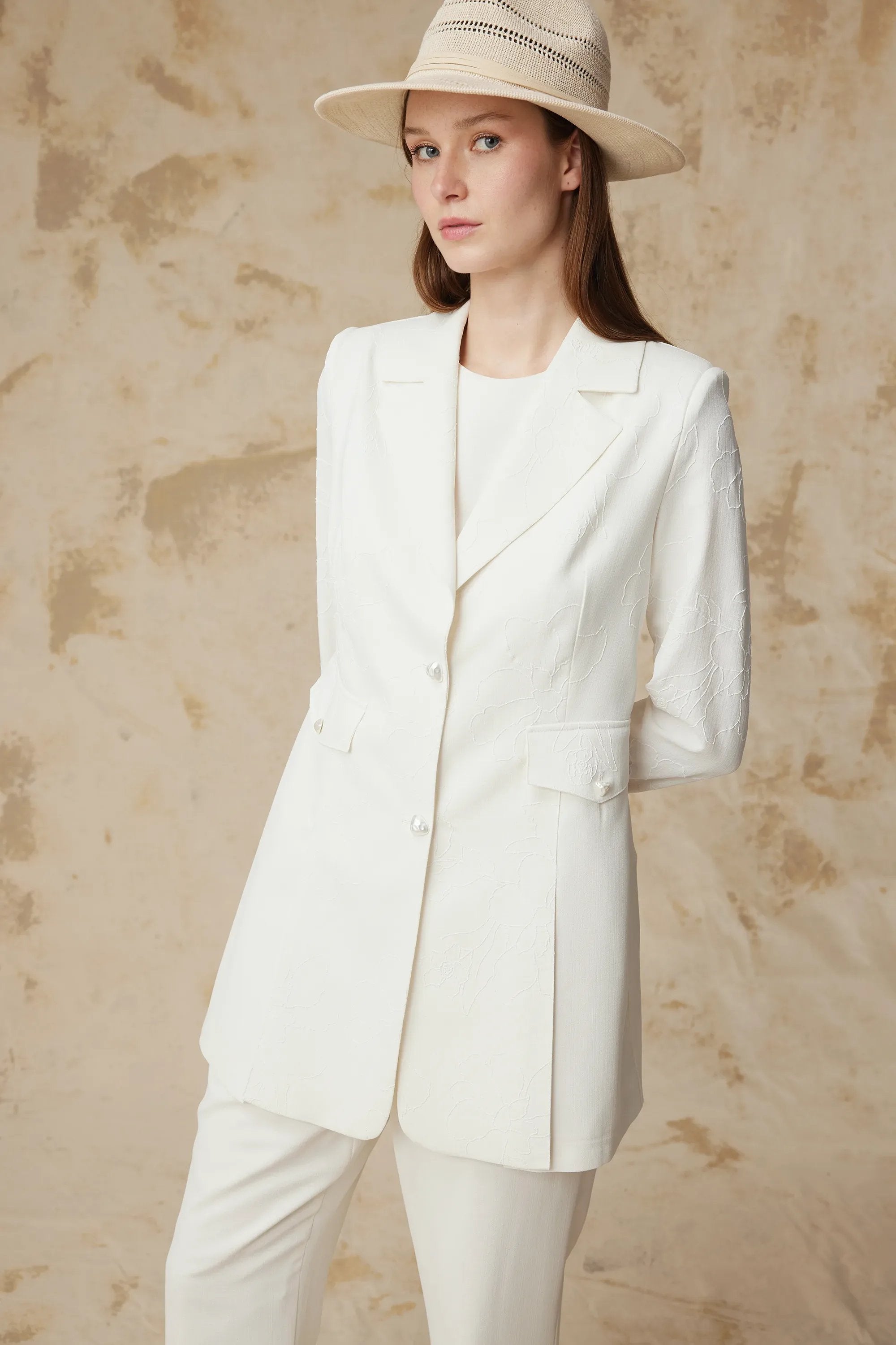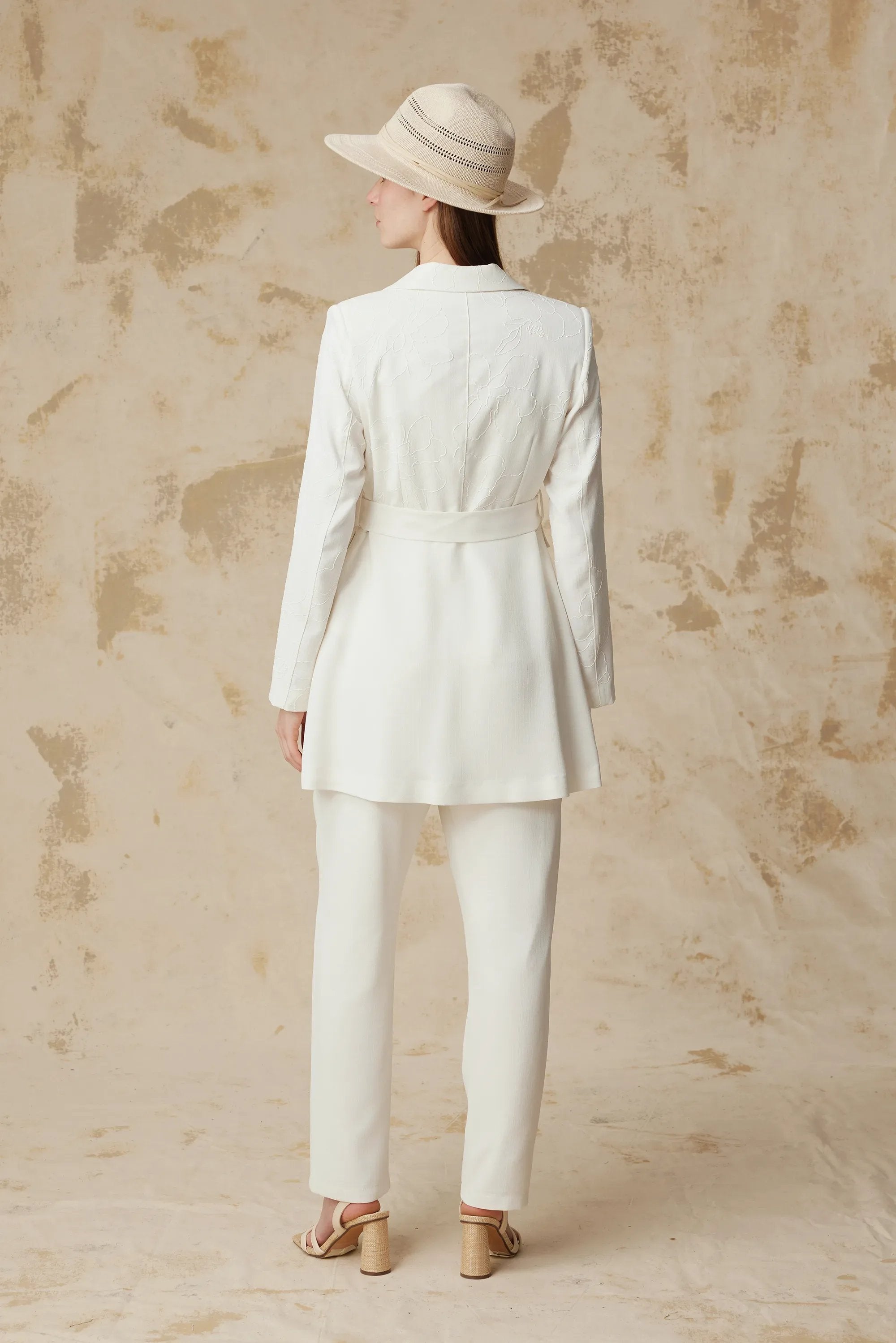 Kruvaze Yaka Kuşaklı Nakışlı Ekru Takım 1740