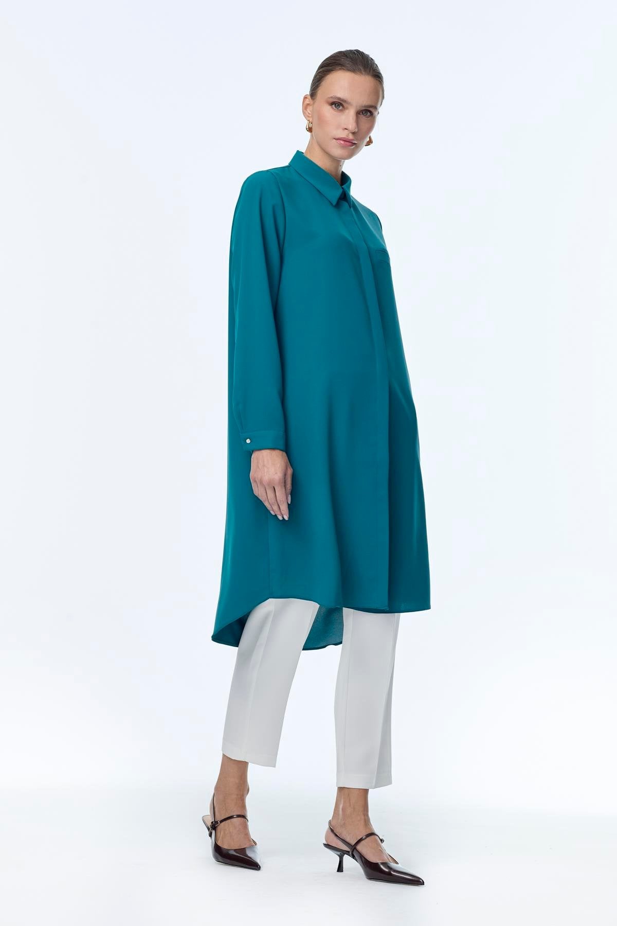 Hidden Button Detail Tunic Petrol Tunic 0767